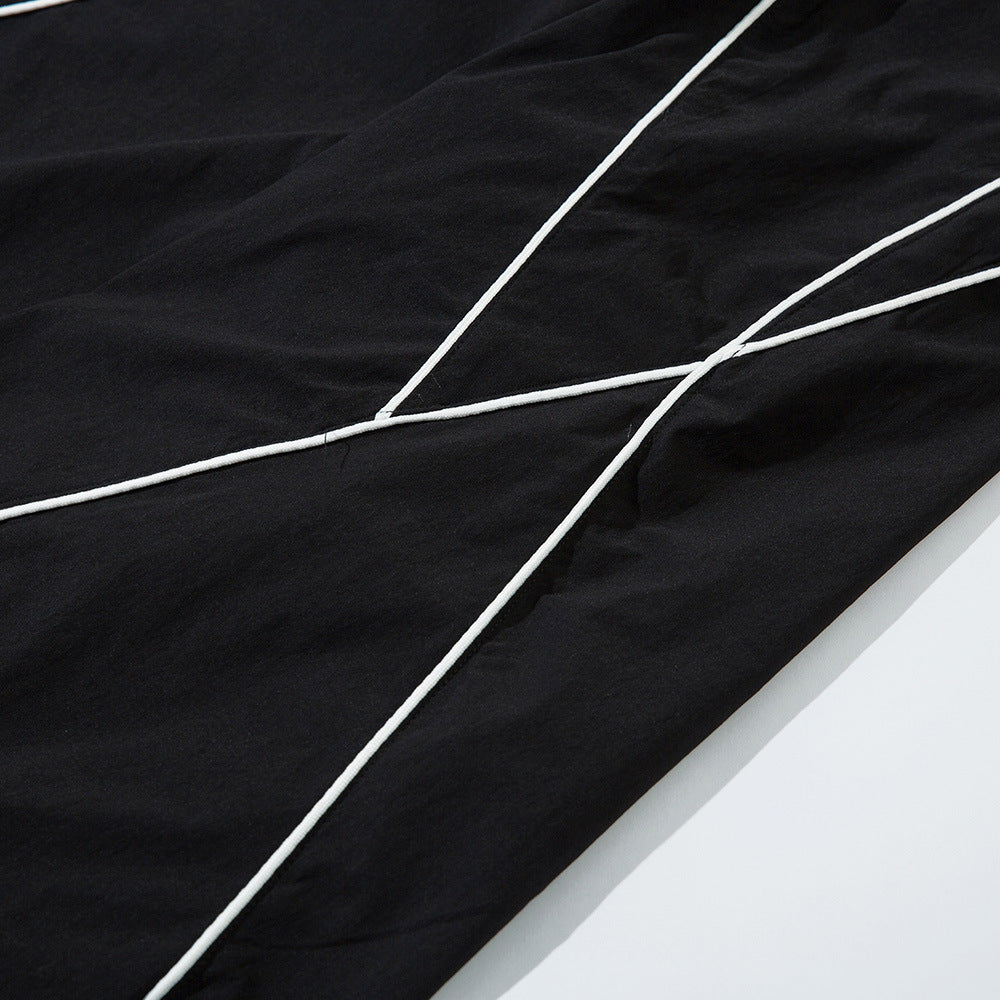 Color: BlackStyle: Street StylePattern Type: StripeSleeve Length: Long SleeveLength: Long PantsMaterial: Nylon (Polyamide)Fabric: Nylon / PolyamideClosure Type: Drawstring ClosureDetails: Pleats,...