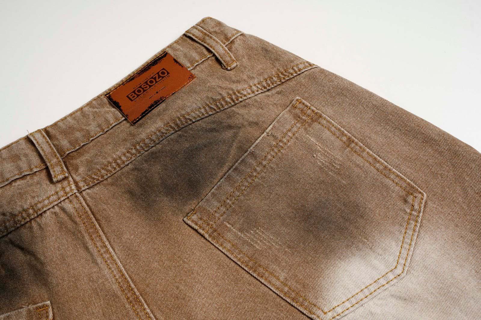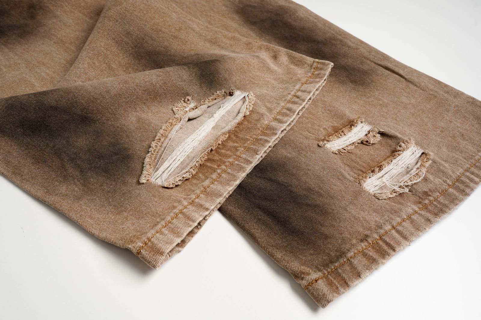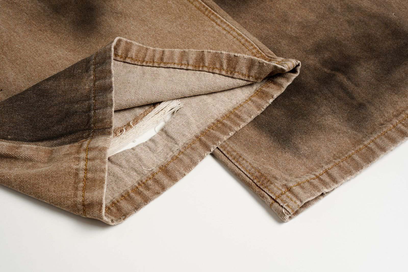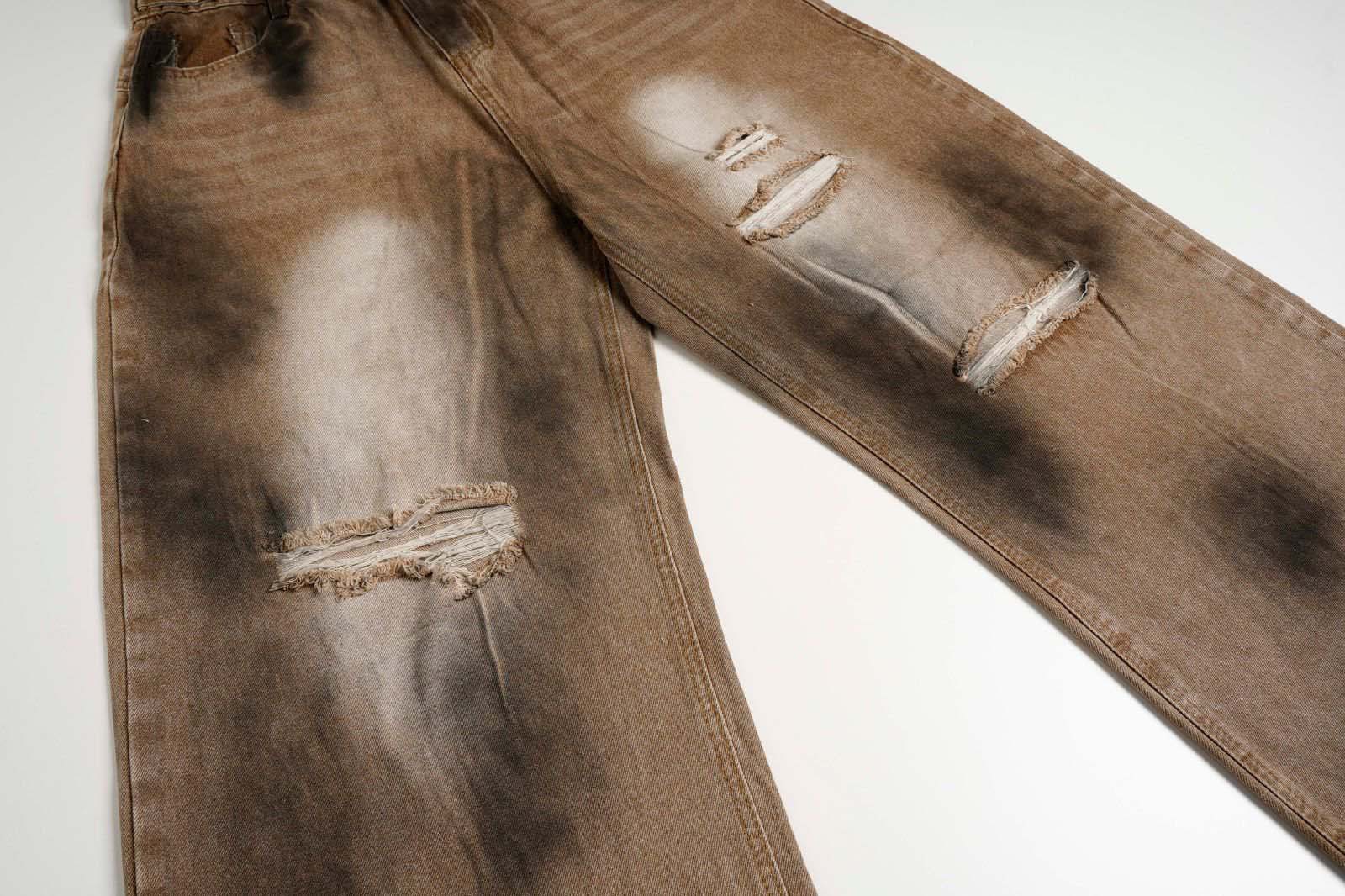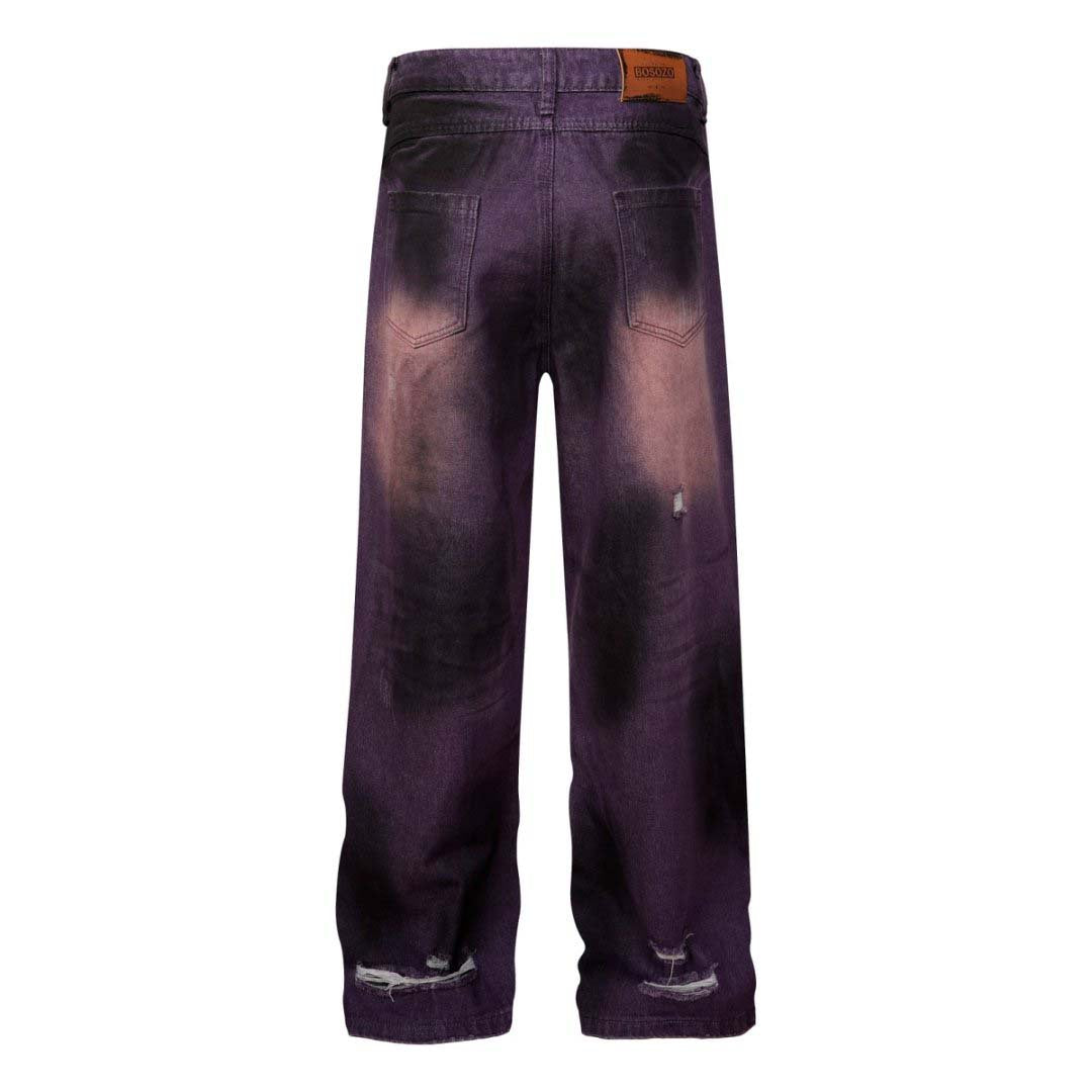 Washed Tie-Dye Distressed Denim Pants Unisex Loose Wide-Leg Straight Long Pants