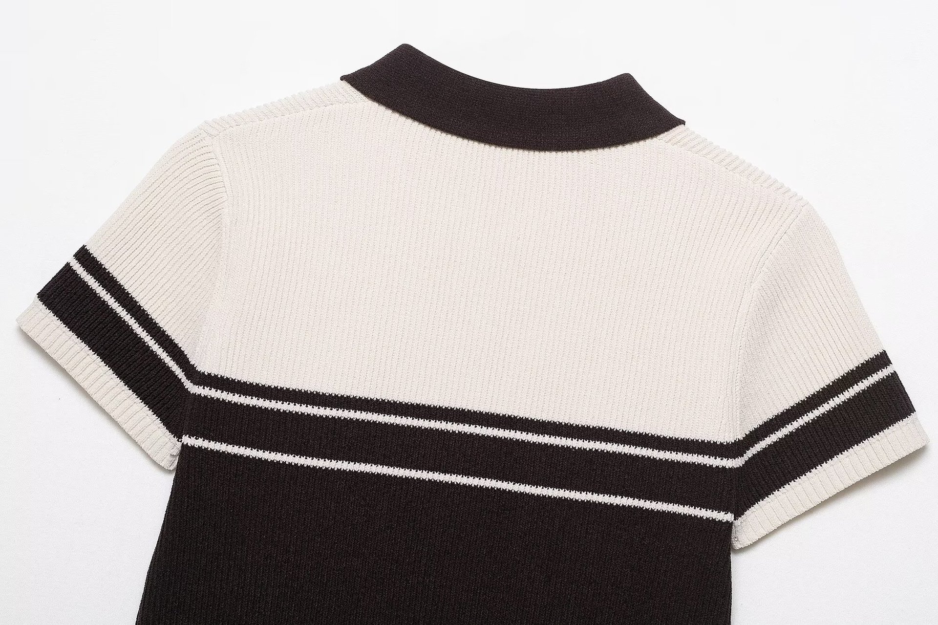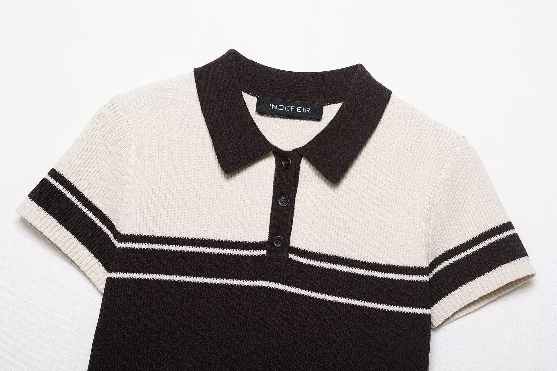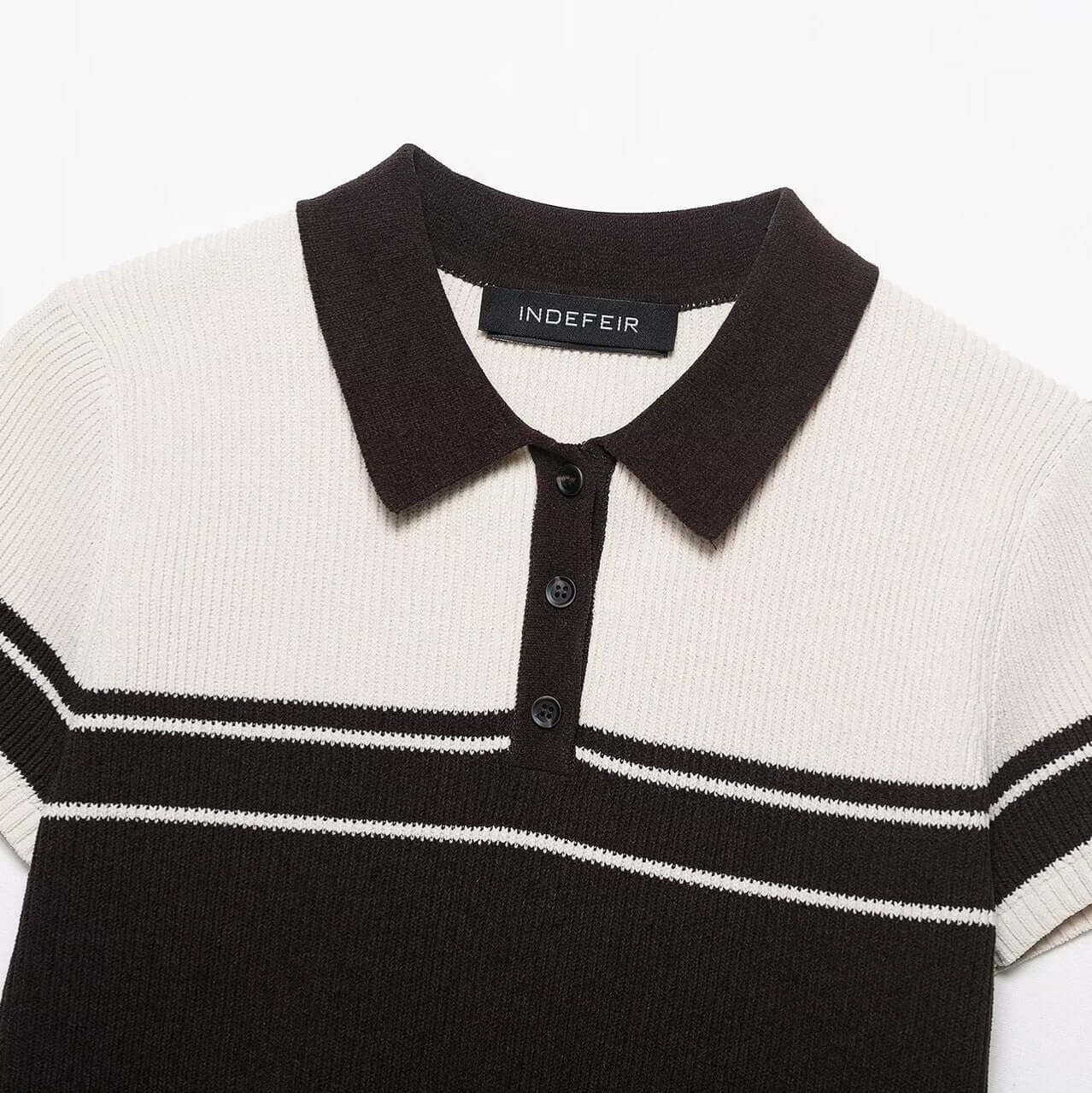 Le Grozavu Ribbed Stripe Knit Polo Top est conçu pour les femmes qui aiment le style de rue européen et...