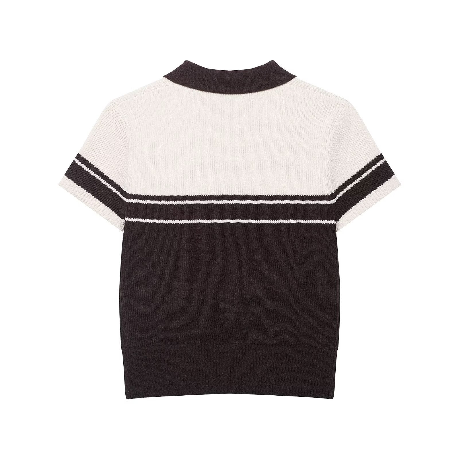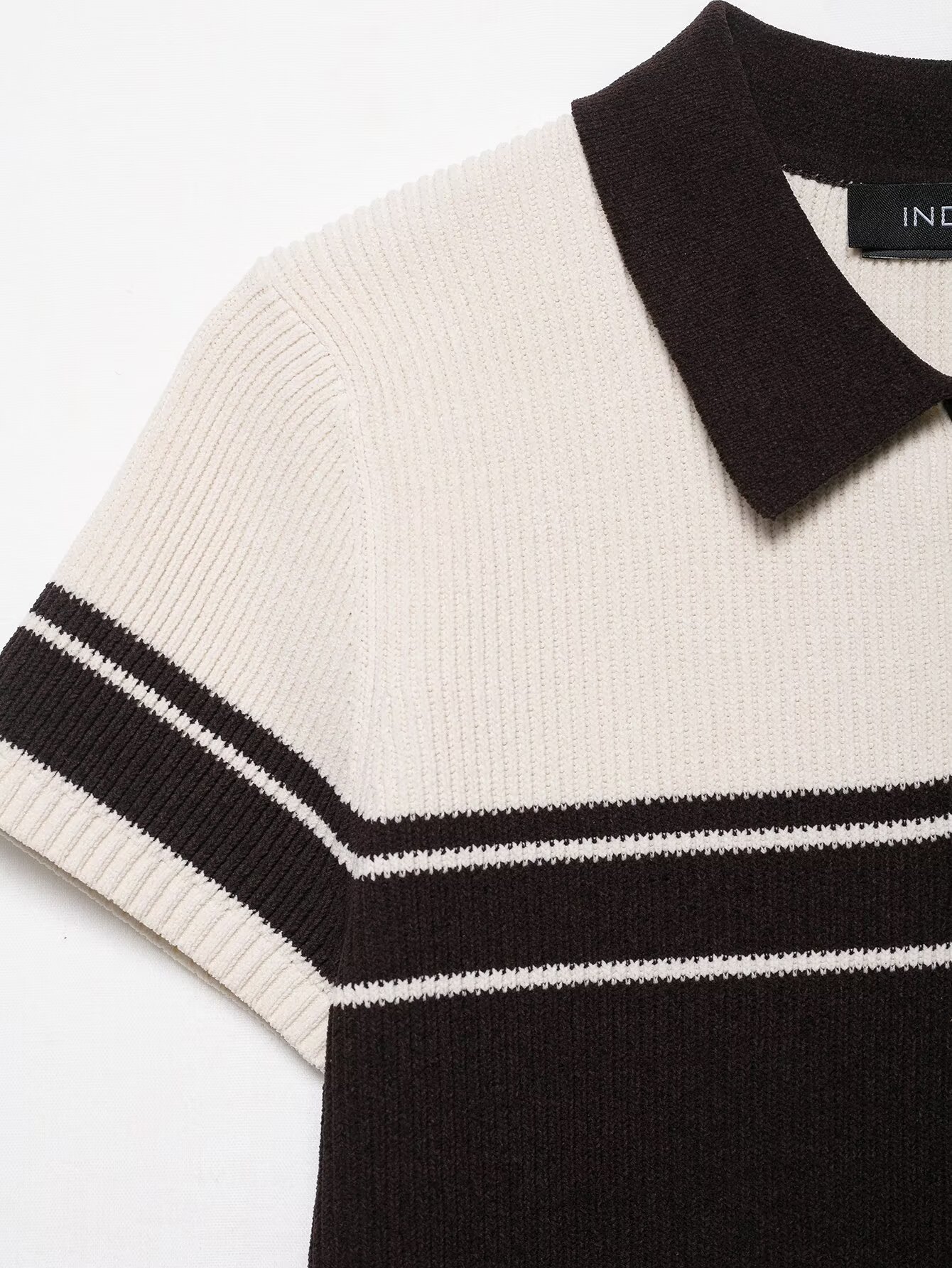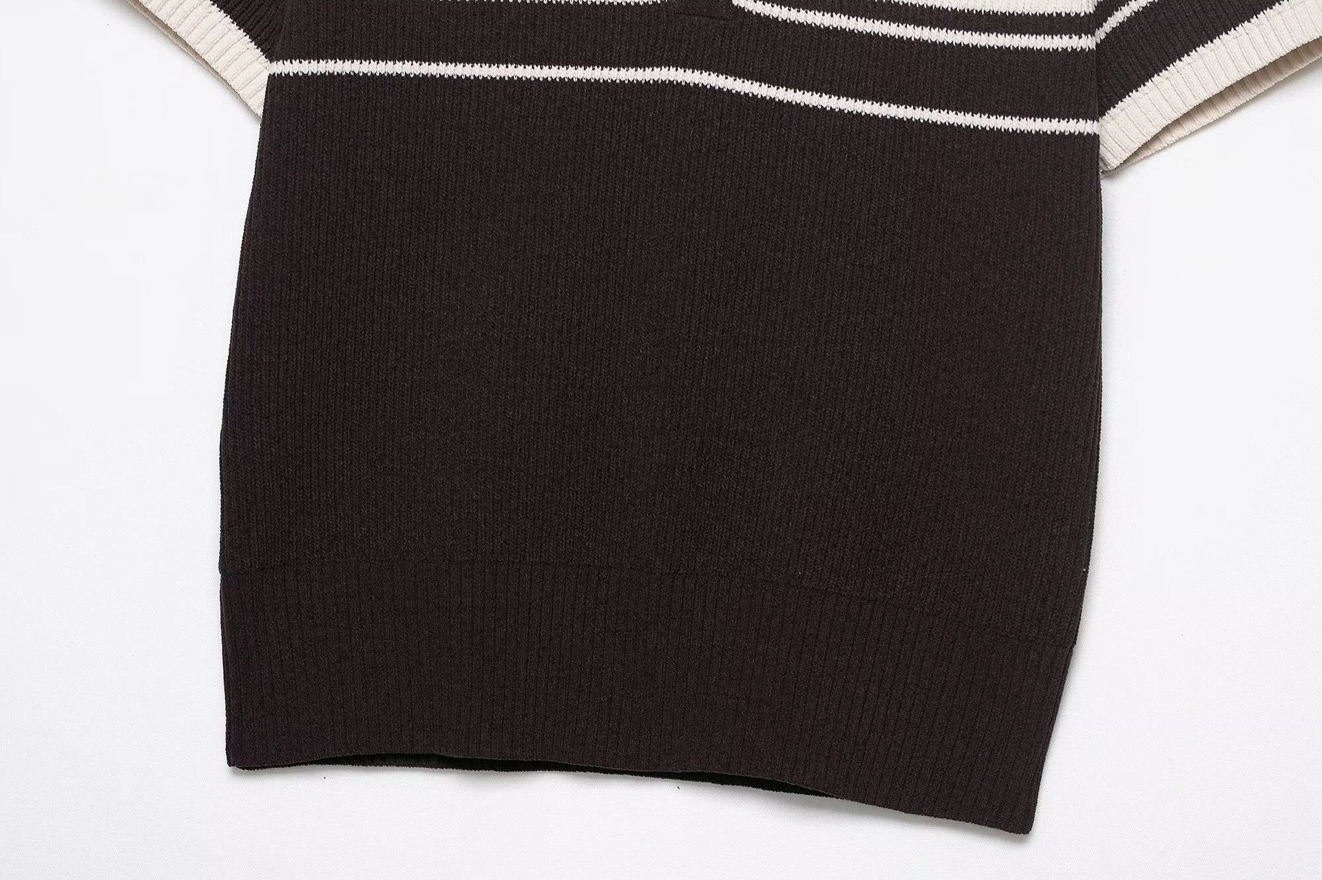 Le Grozavu Ribbed Stripe Knit Polo Top est conçu pour les femmes qui aiment le style de rue européen et...