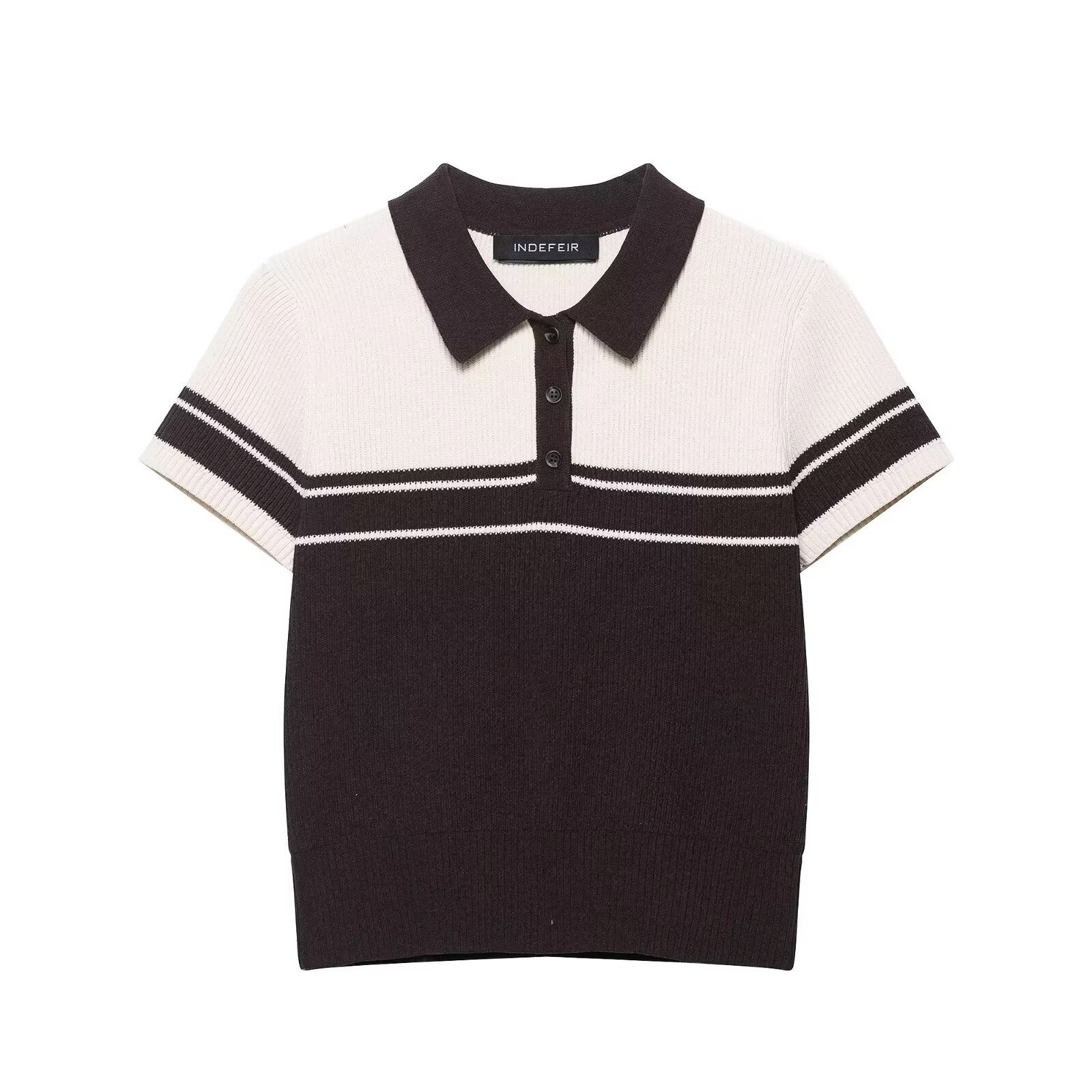 - Polo T-shirt en tricot à rayures côtelées, ample et respirant, pour un vêtement décontracté féminin confortable, élégant et polyvalent.