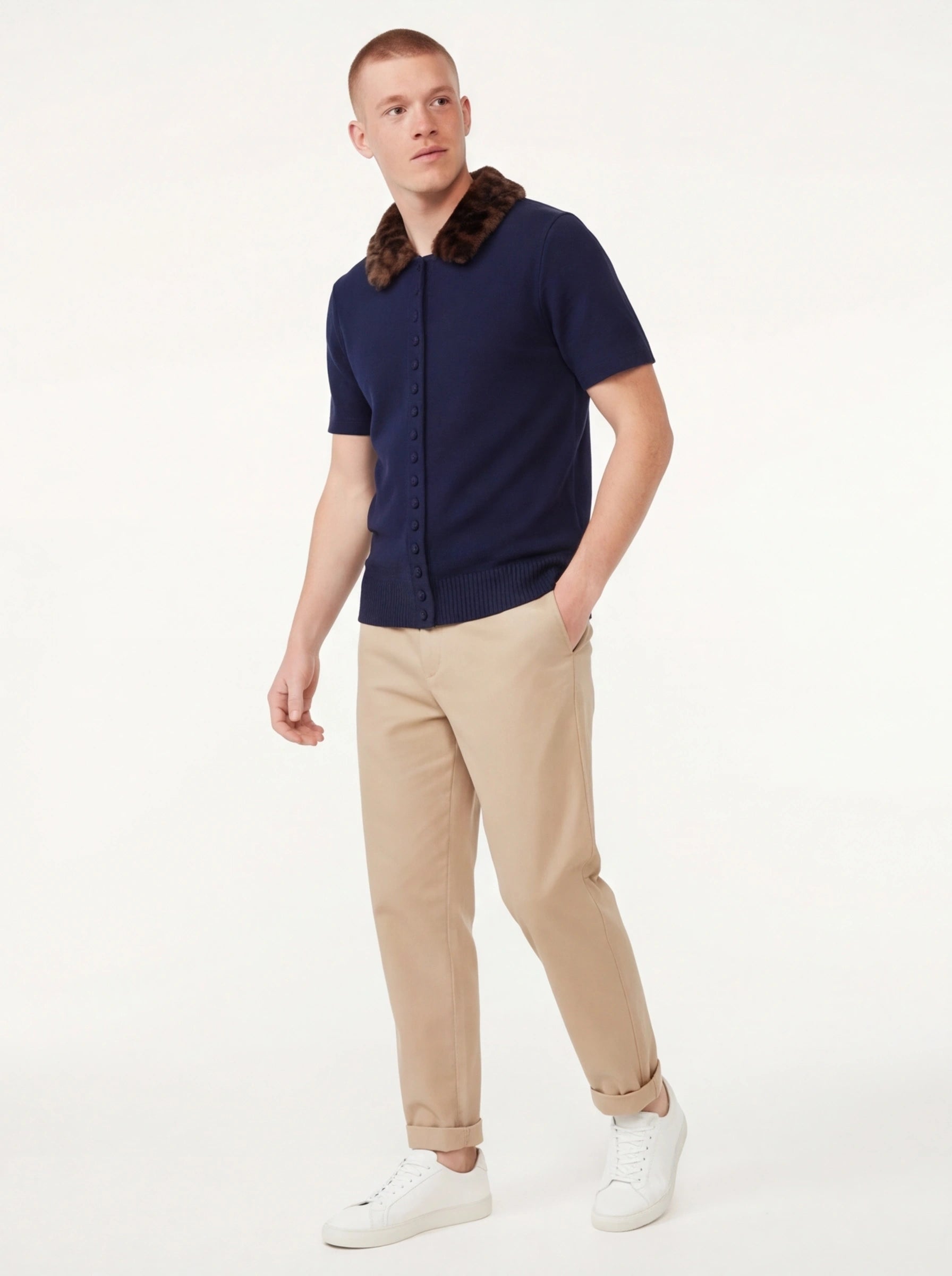 Le modèle porte une taille S pour un ajustement impeccable et sur mesure.