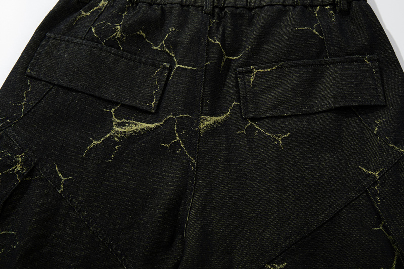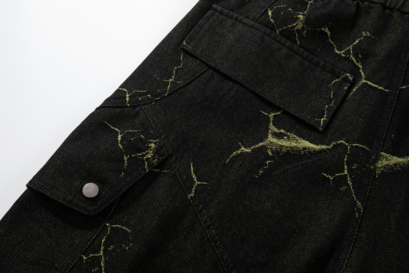 Entrez dans la mode de rue audacieuse avec les Pantalons Cargo en Denim à Motif Éclair Vintage, conçus pour un...