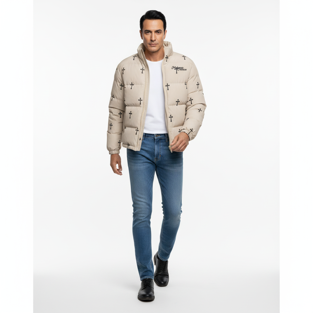 Restez au chaud et élégant pendant les jours plus froids avec la Veste Puffer en Coton à Col Montant Imprimé...