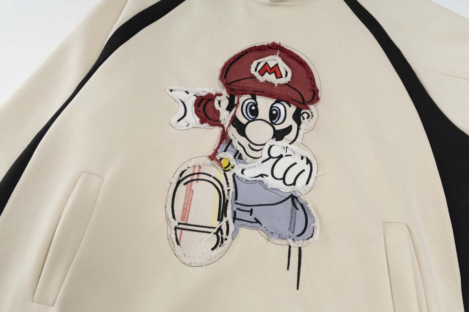 Hoodie en Patchwork de Dessin Animé Rétro – Coupe Ample
