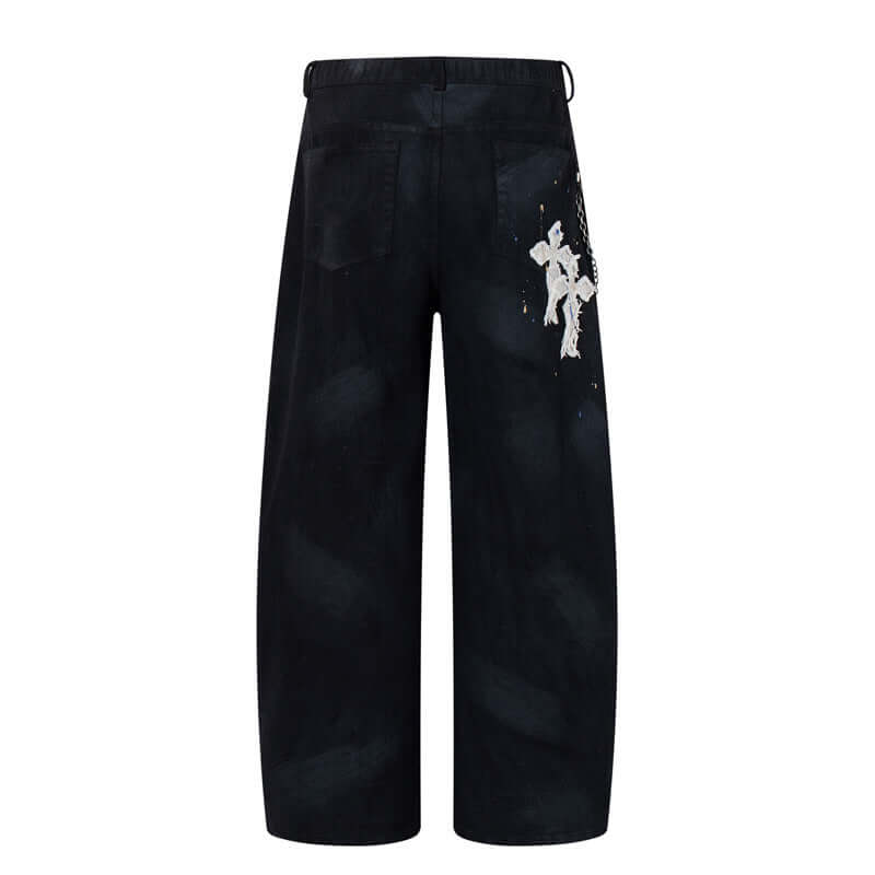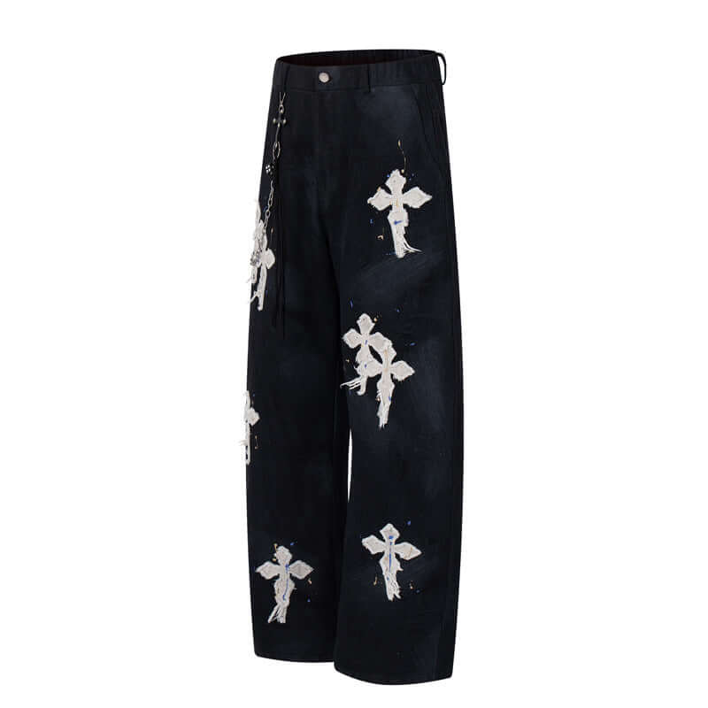 Faites une déclaration avec les Jeans en Denim avec Broderie de Patch Croisé de Luxe Street Style, conçus pour la...