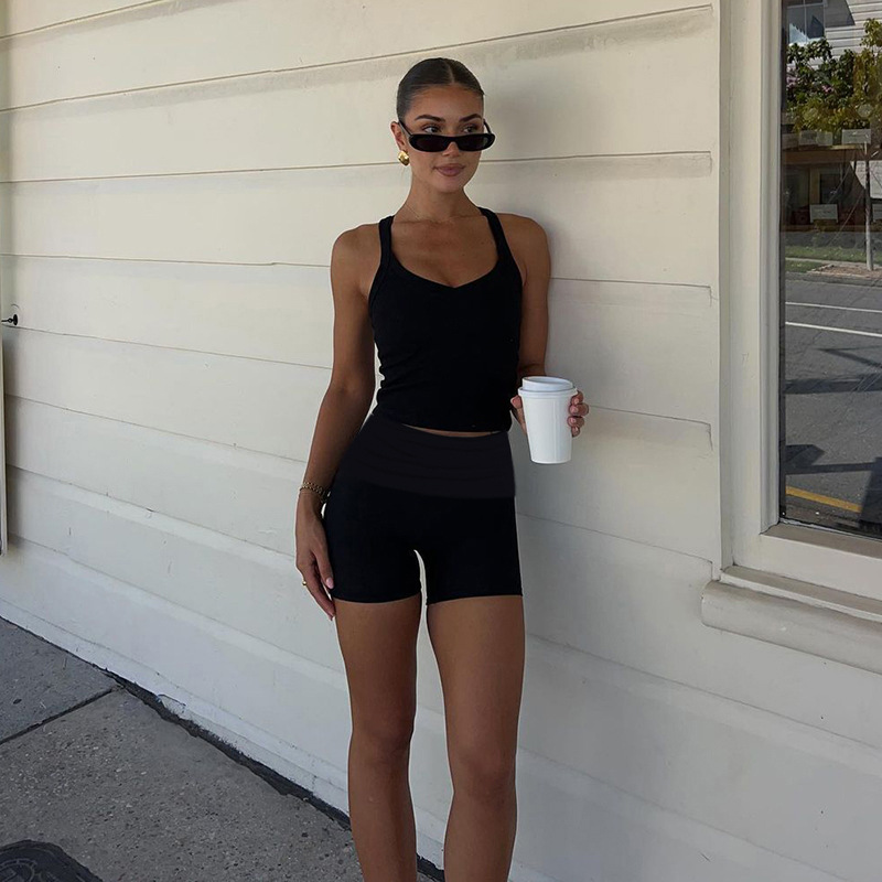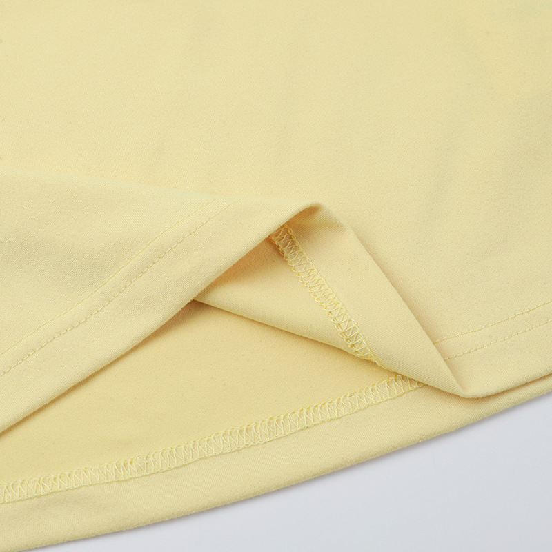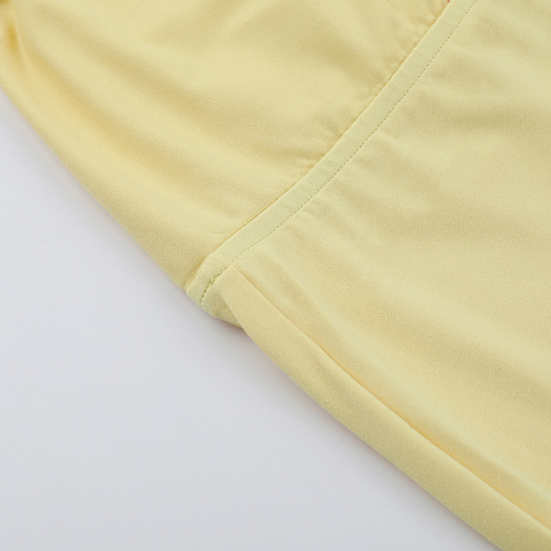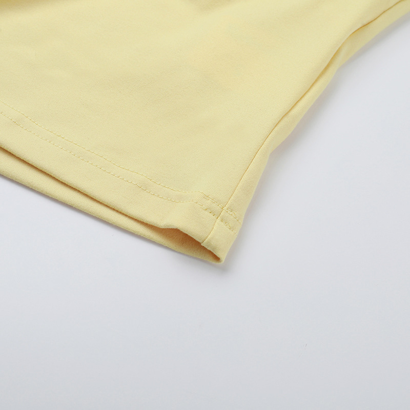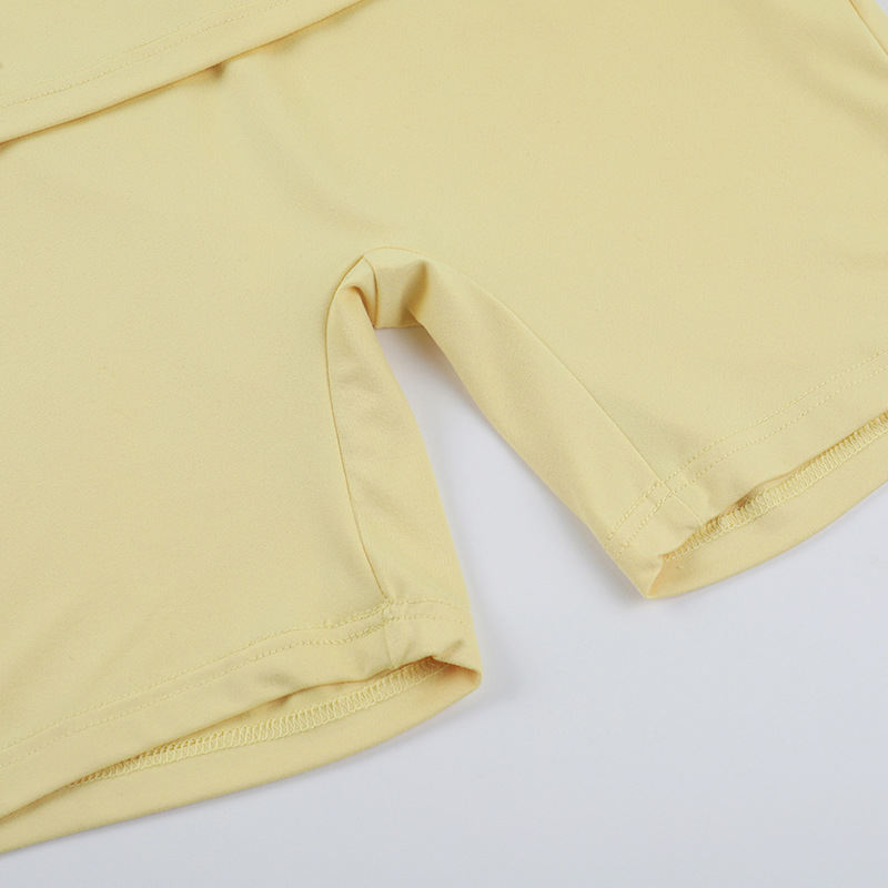 • Square Collar Pleated Two-Piece Set featuring a stylish square-neck top and matching shorts in soft yellow.