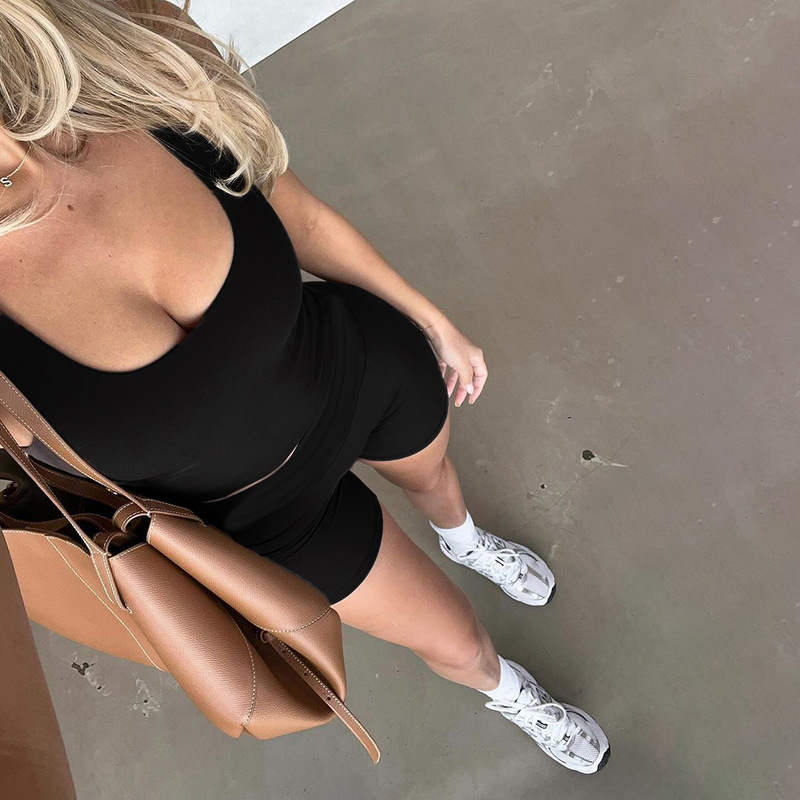 Il Grozavu Square Collar Pleated Short Set è progettato per donne che amano uno stile casual moderno con una struttura elegante. Caratterizzato da un top a maniche lunghe con scollo quadrato e pantaloni a tre quarti abbinati, questo set offre una silhouette pulita che valorizza pur rimanendo comoda.