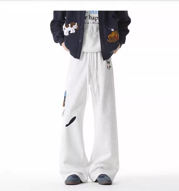 I pantaloni della tuta Grozavu con ricamo di cane combinano un carattere vintage giocoso con il comfort per tutto il...