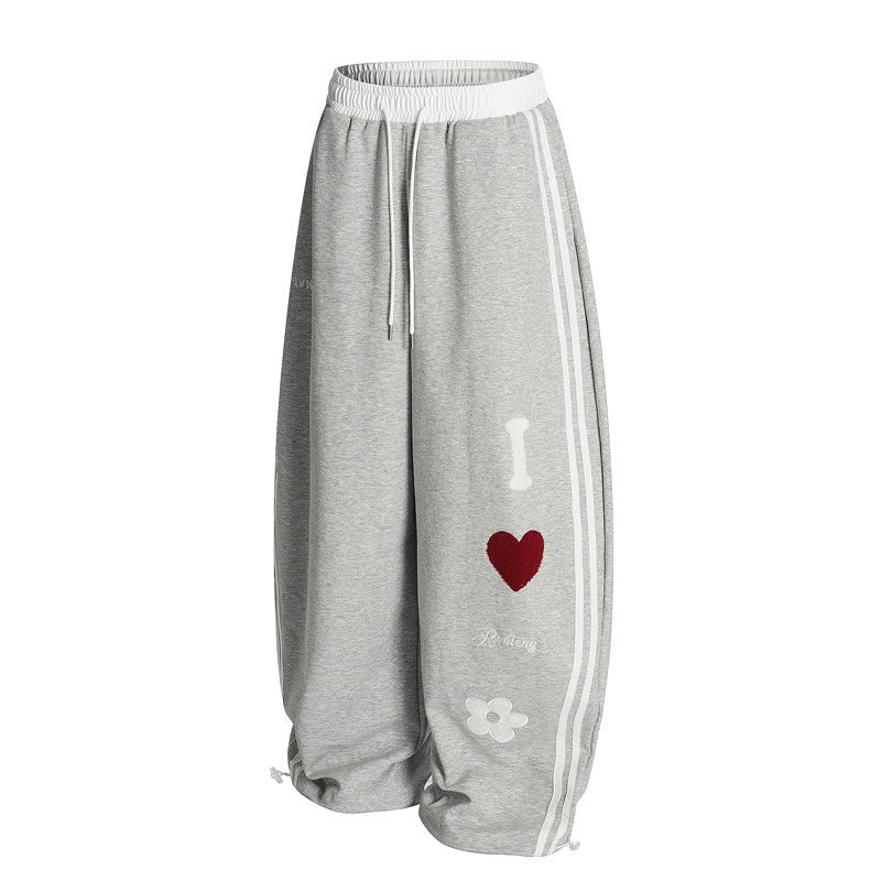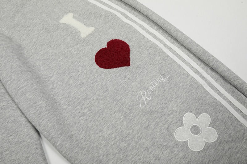 Street Style Towel Embroidery Heart Graphic Sweatpants