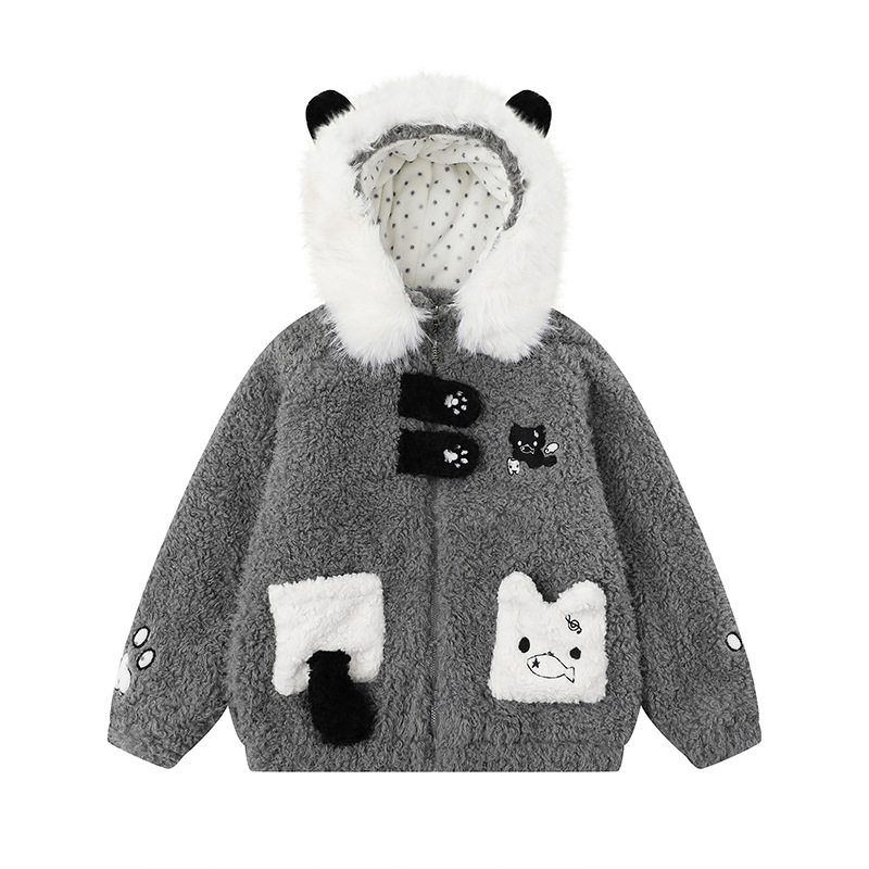 Pattern Type: CartoonSleeve Length: Long SleeveNeckline: HoodedClosure Type: ZipperDetails: PleatsFit Type: Loose FitOccasion: CasualGender: FemaleColor: White, GraySize: S, M, LMaterial:... Per saperne di più