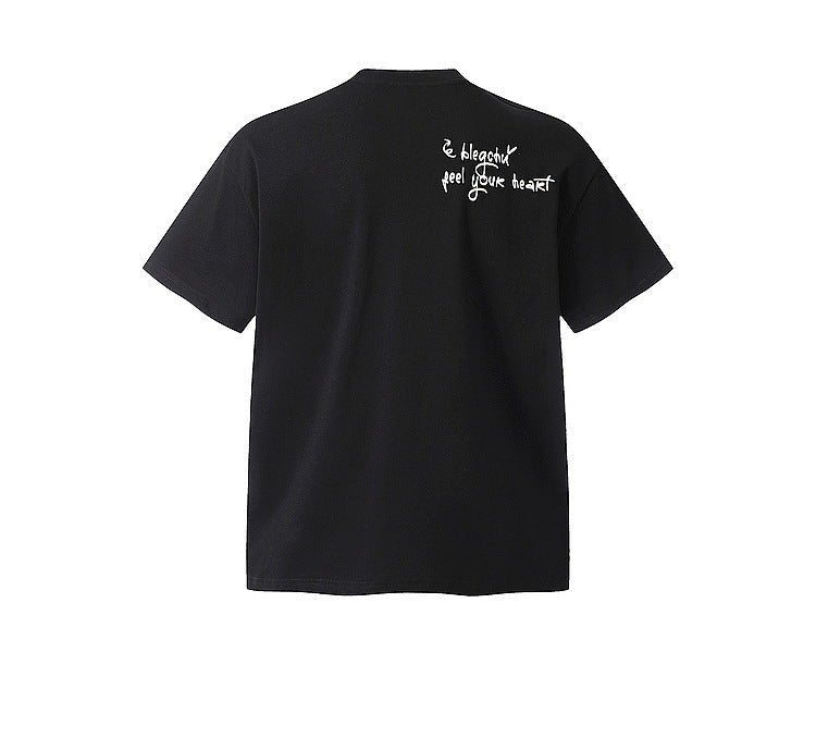 - T-shirt in puro cotone traspirante a vestibilità ampia con maniche scese per un abbigliamento estivo casual unisex comodo e alla moda.