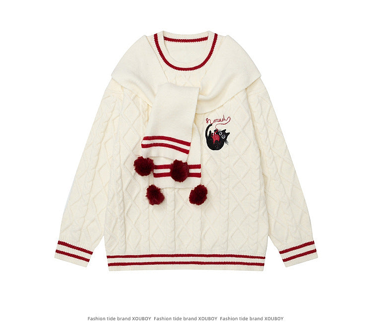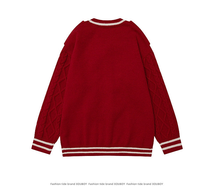 Apricot & Red Street Knit Pullover, round neck, long sleeves, and soft acrylic fabric for warm casual winter wear.
