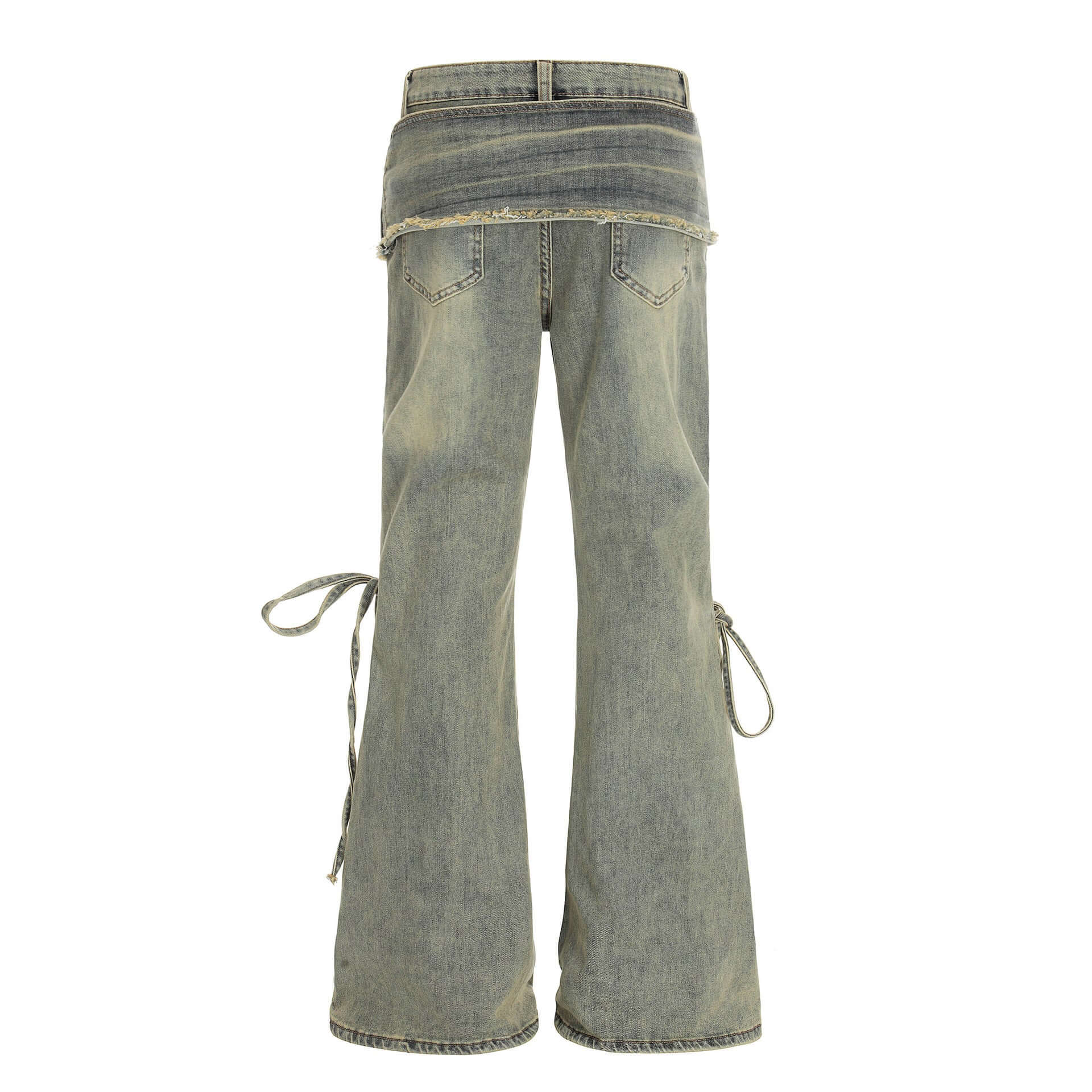 - Pantaloni in cotone a vita media, svasati e traspiranti, con dettagli in stile denim e leggero elastico per un look streetwear snellente, audace e confortevole.