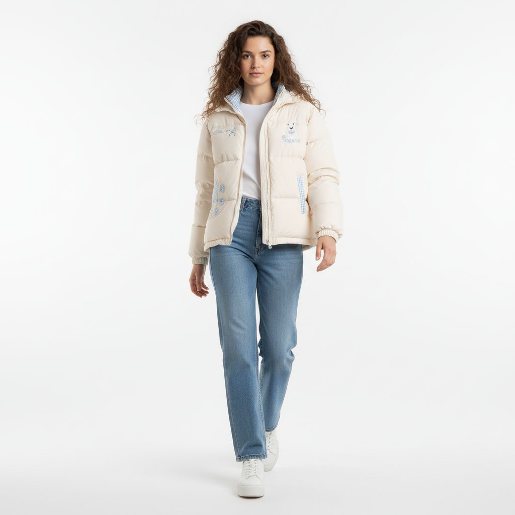 Giacca Puffer in Cotone con Cappuccio – Vestibilità Ampia