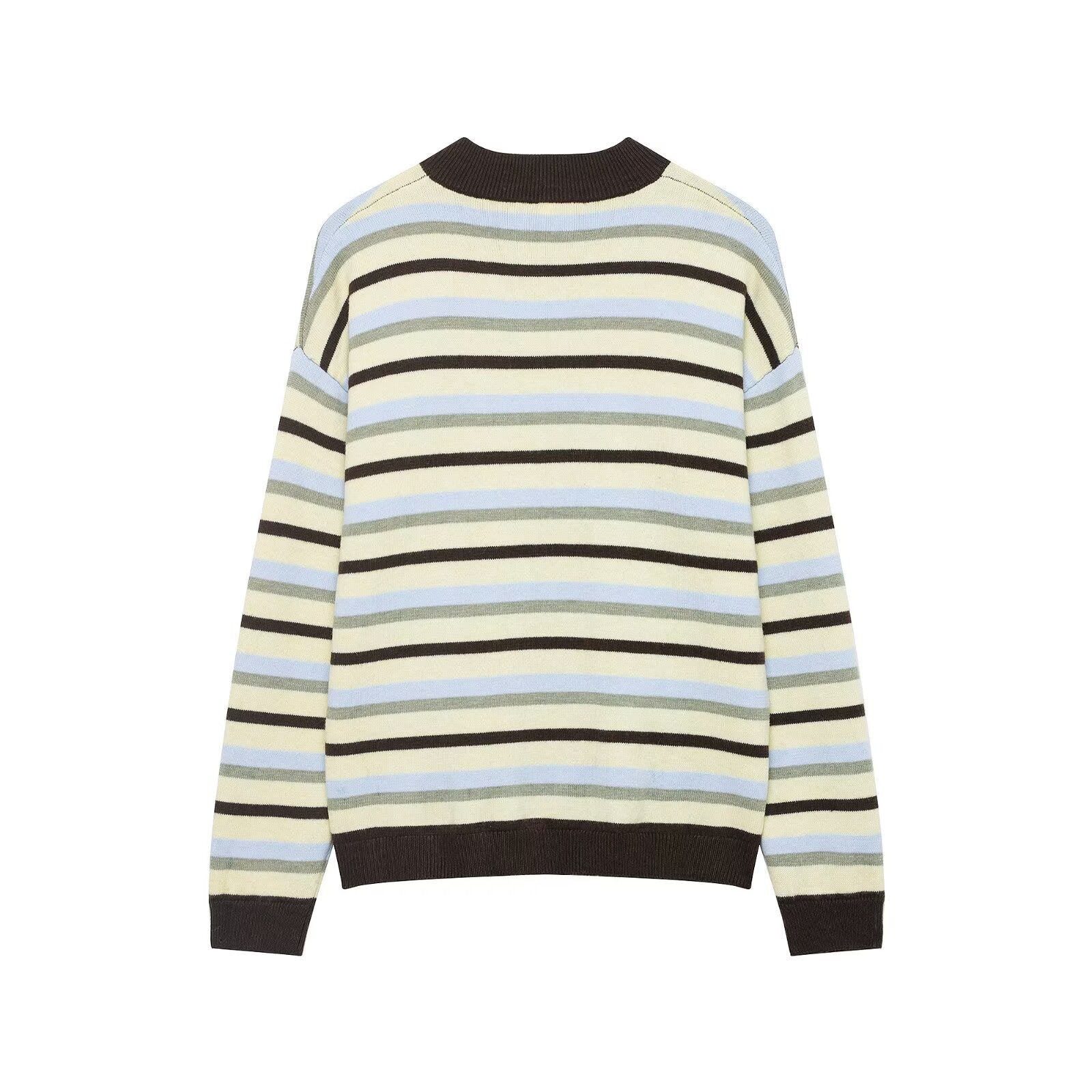 Style: Fashion StylePattern Type: StripeSleeve Length: Long SleeveNeckline: Round NeckFabric: Knit FabricMaterial: Polyester (Polyester Fiber)Closure Type: Single Button PlacketDetails: Collage/Splicing,... Per saperne di più