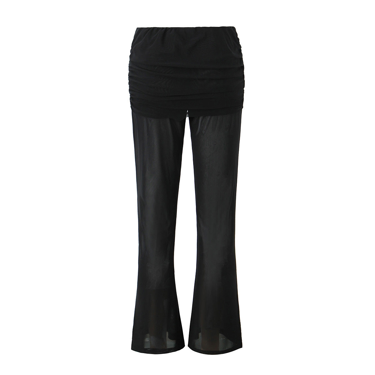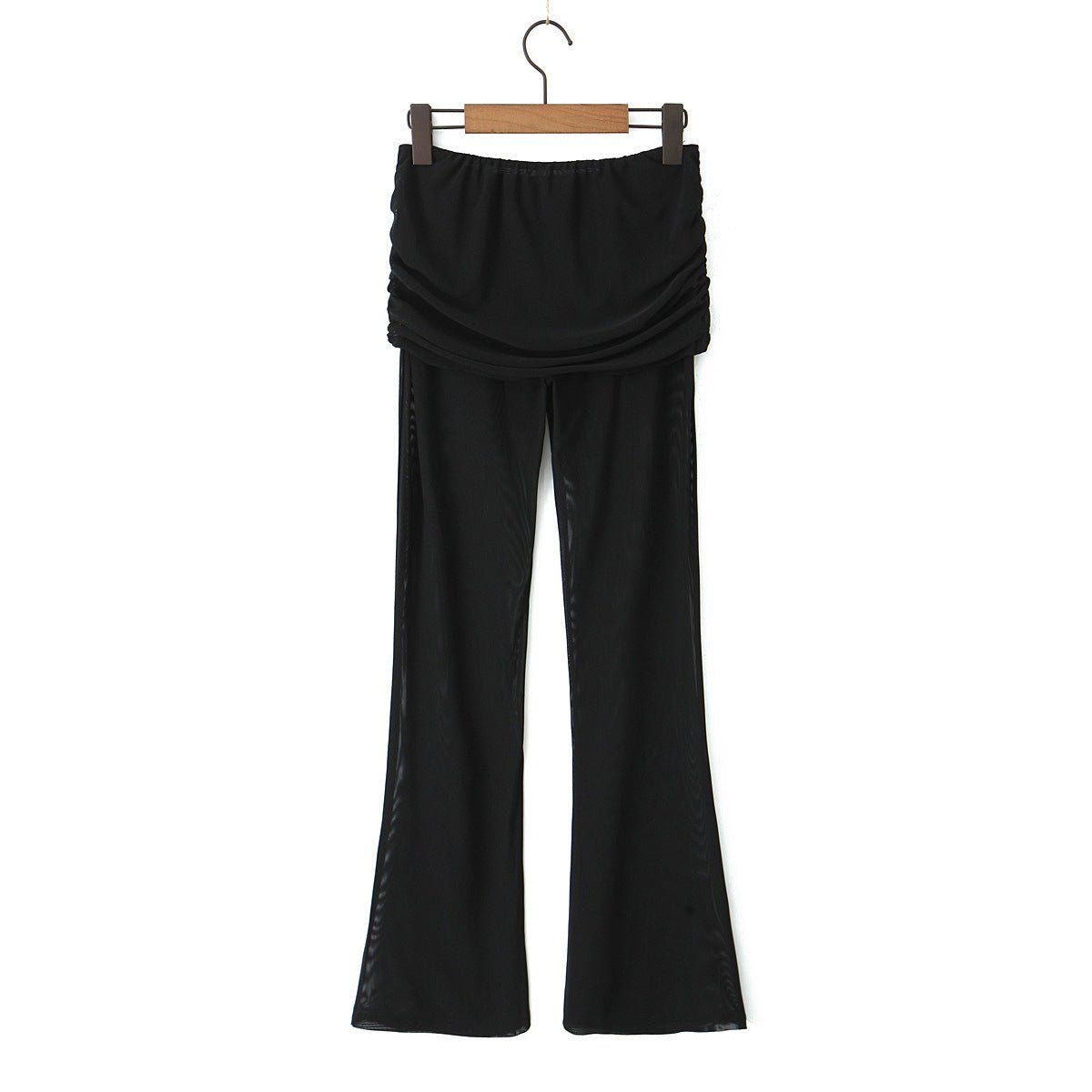 Mesh Splicing Design, Slim Fit Hip-Hugging Cut, Low Waist Shape, Micro Flared Pant Style, Long Length, Medium Thickness, European & American Style, Casual Fashion Pants