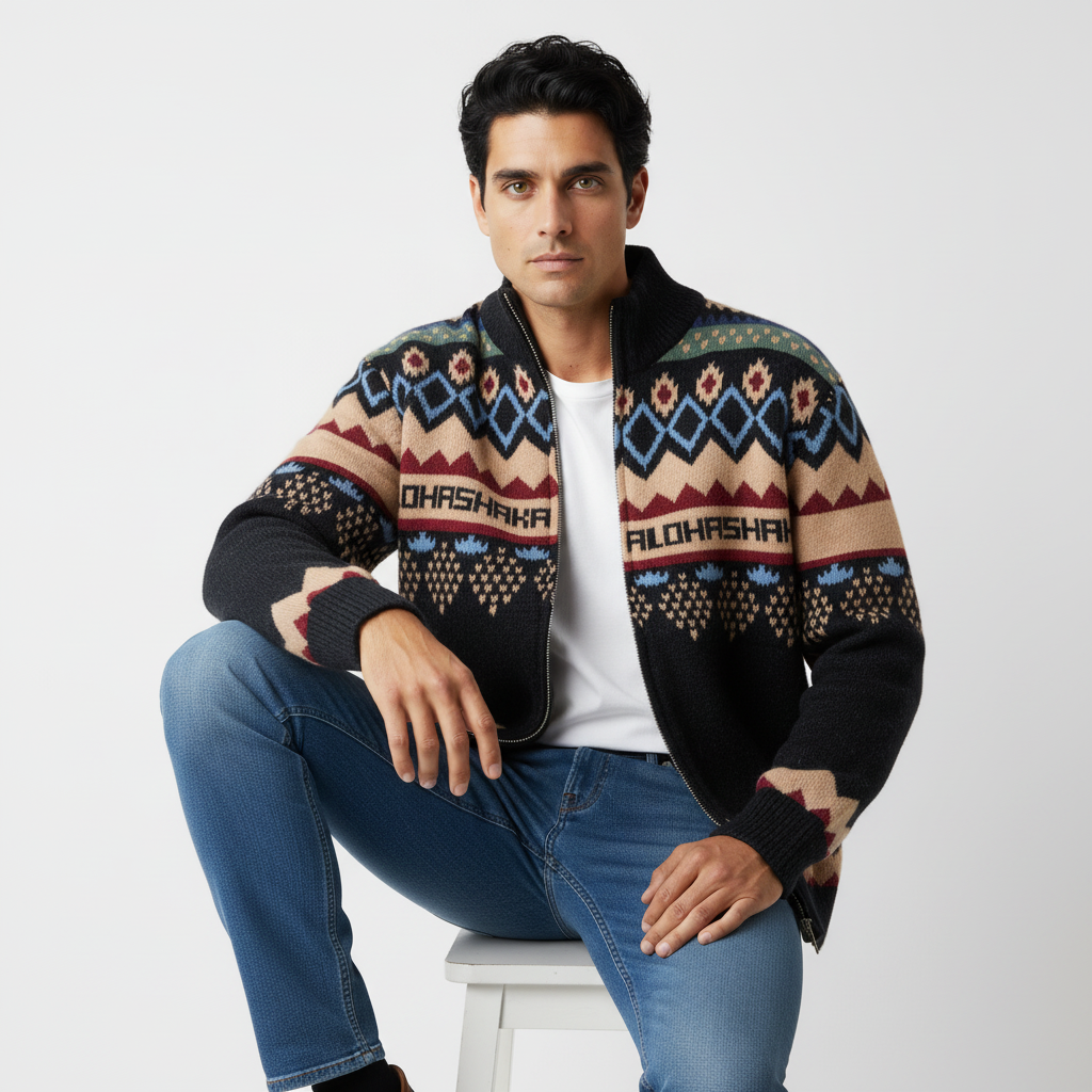 Il Cardigan a Maglia Fair Isle Retro Grozavu è progettato per uomini e donne che amano uno stile street audace...