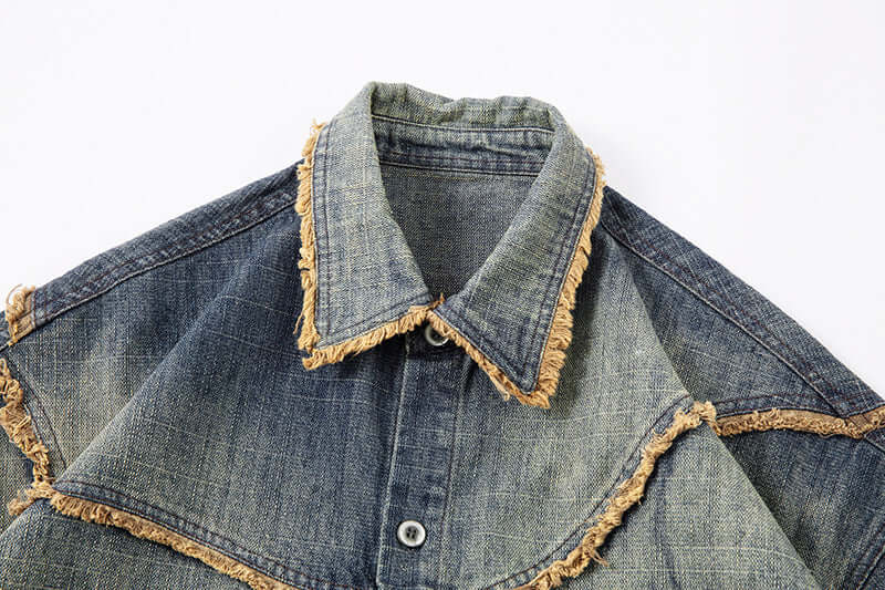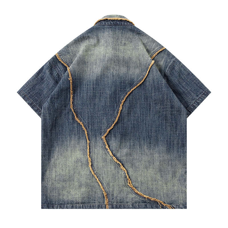 - Camicia in denim di cotone puro, traspirante e a vestibilità ampia, con design a blocchi di colore e maniche corte, ideale per un abbigliamento casual unisex comodo.