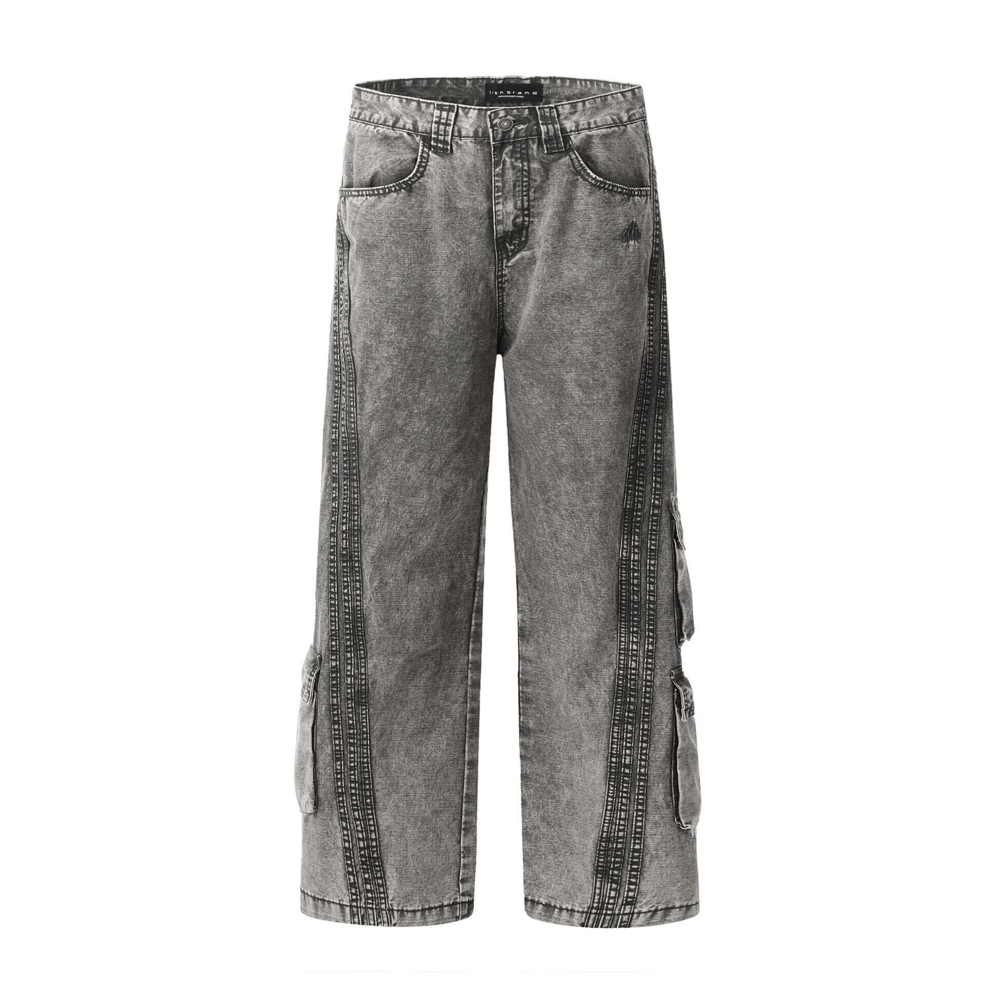 Fai il tuo ingresso nelle strade con fiducia indossando i Jeans da Lavoro Grigi Lavati Multipli di Grozavu, una perfetta...