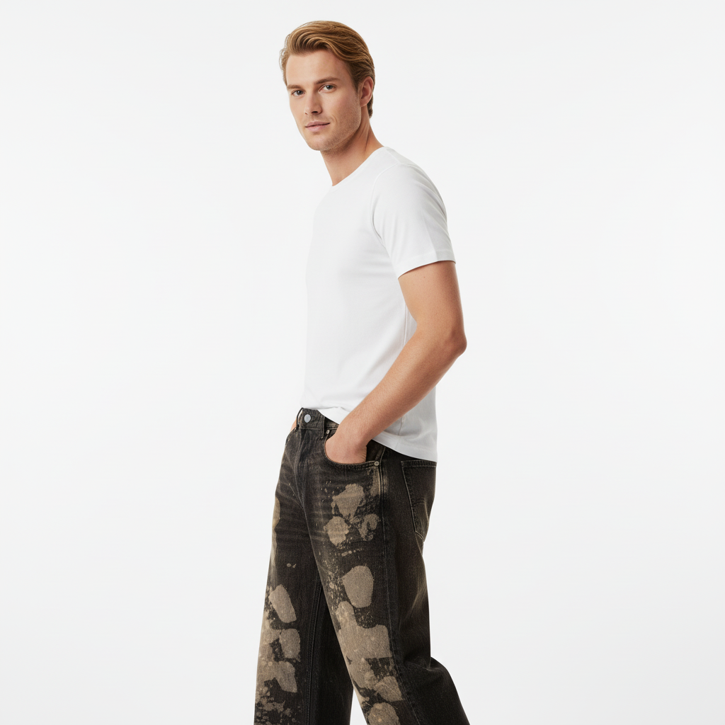 Aggiorna il tuo streetwear quotidiano con questi Pantaloni Lunghi in Denim Retro Lavato Stile Street, progettati per uno stile senza...