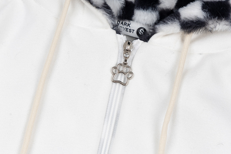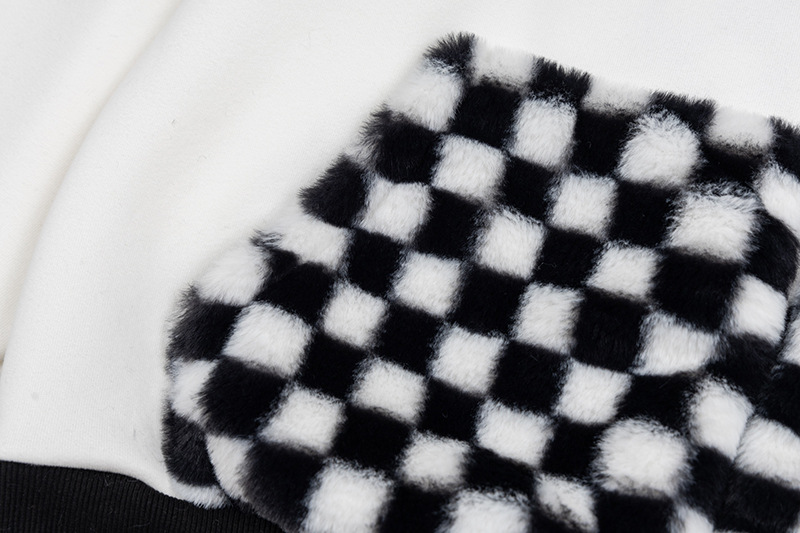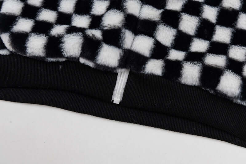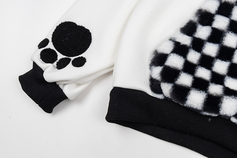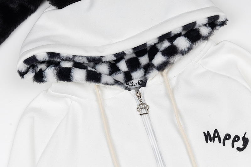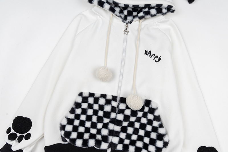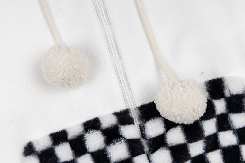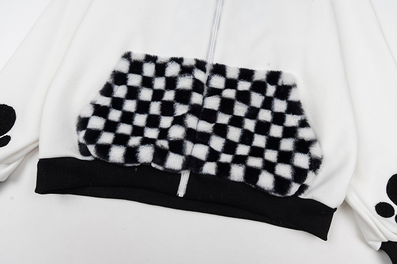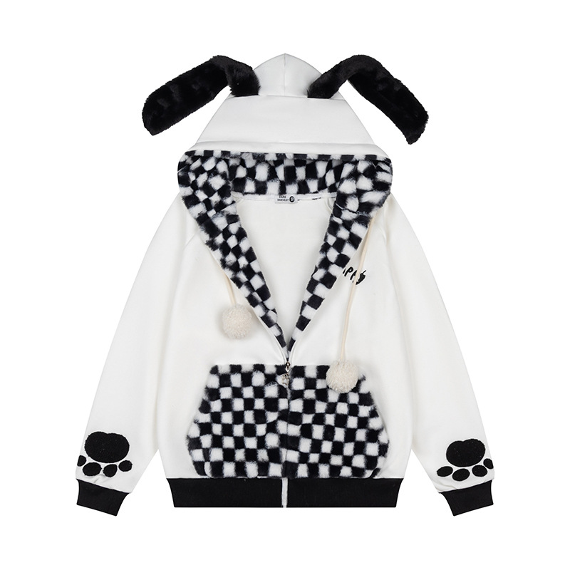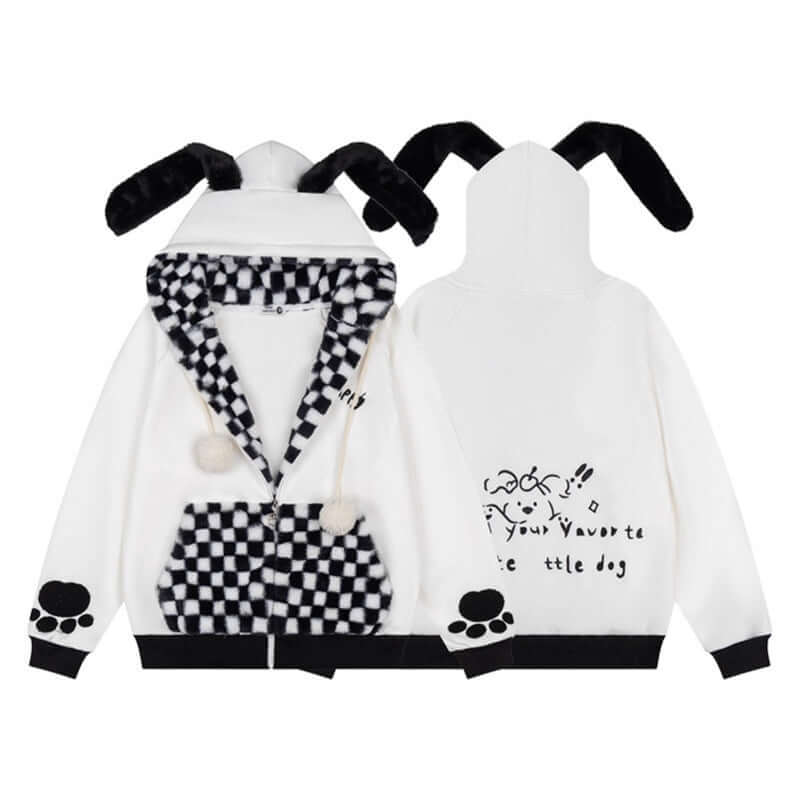Checkered Fleece Hoodie with Rabbit Ears