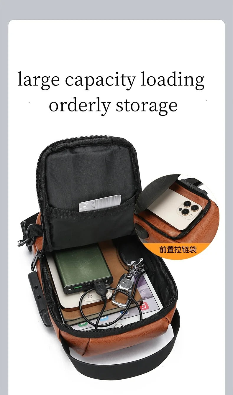 Stay organized and powered up on the go with the USB Charging Waterproof Chest Bag, a sleek commuter essential made for modern daily life. Designed in a compact crossbody silhouette with durable PU material, this bag helps protect your essentials from light rain and everyday wear. With a built-in USB charging feature, secure zipper closure, and multiple pockets for easy organization, it’s the perfect hands-free companion for commuting, travel, and casual outings in Black, Dark Brown, or Light Brown.