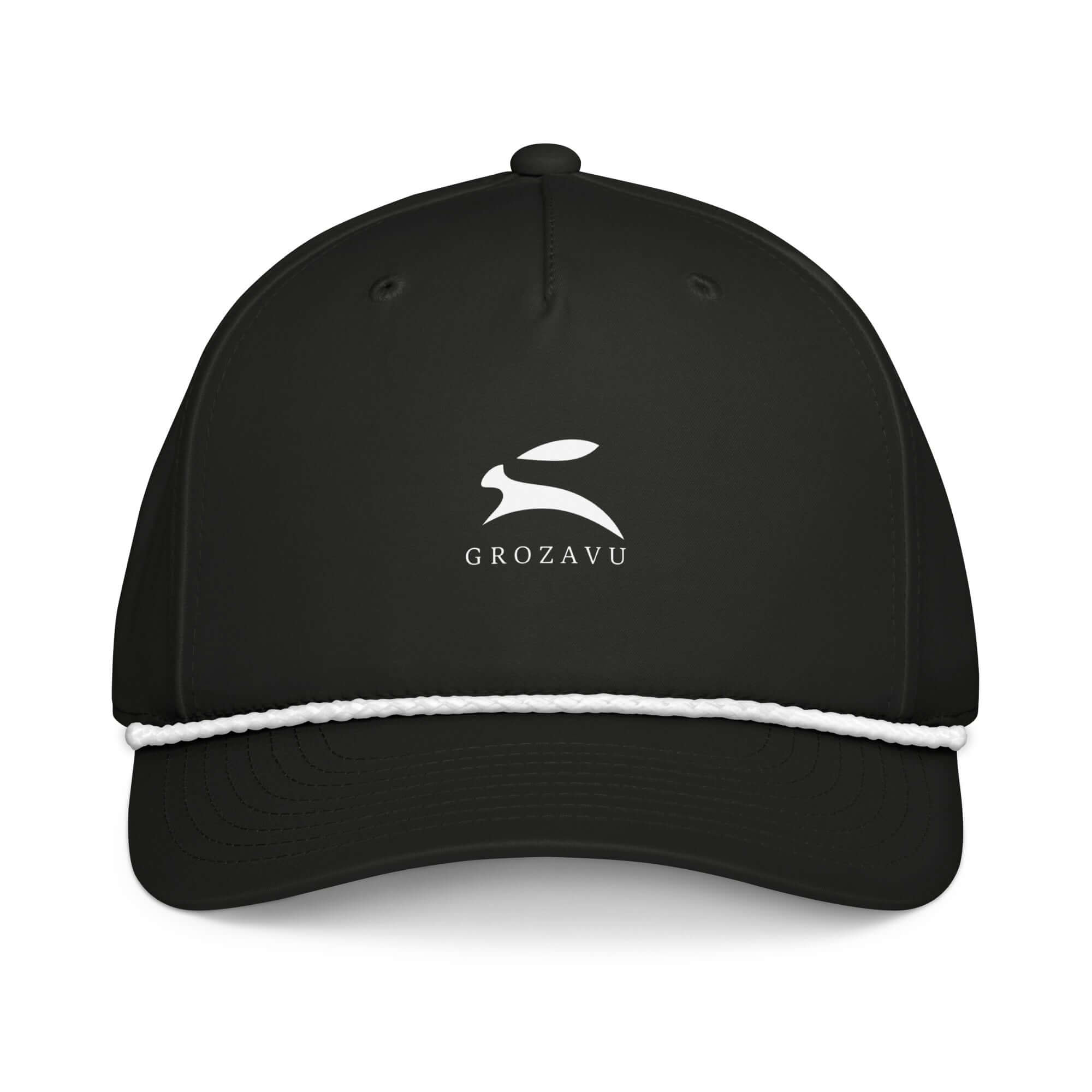 • New Classic rope cap featuring a black design with braided rope detail and Grozavu logo.