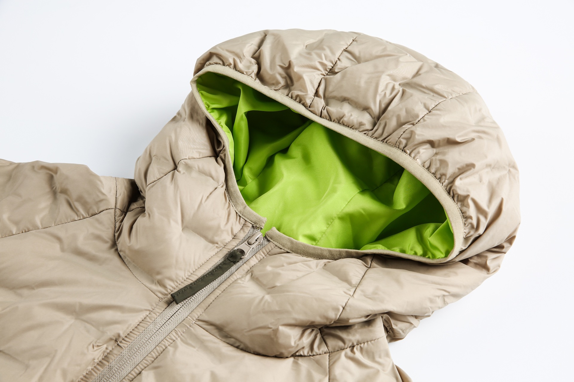 The Grozavu Color-Blocked Hooded Down Jacket delivers lightweight insulation with a modern winter silhouette. Designed in khaki green, this jacket... Read more