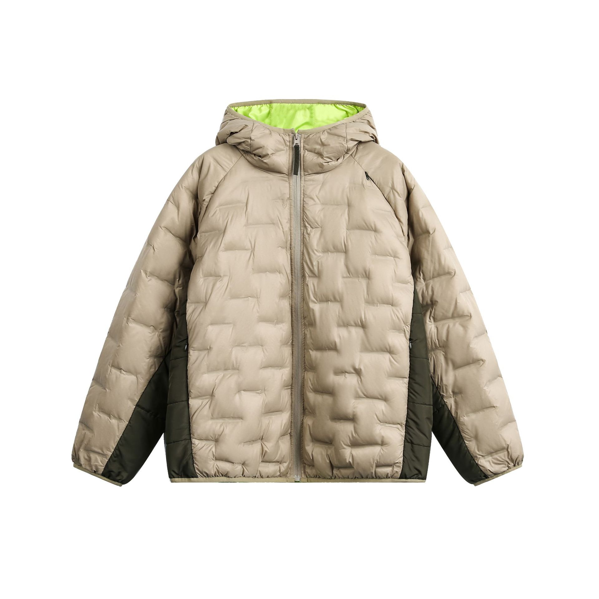 Color-Blocked Hooded Down Jacket – Loose Fit
