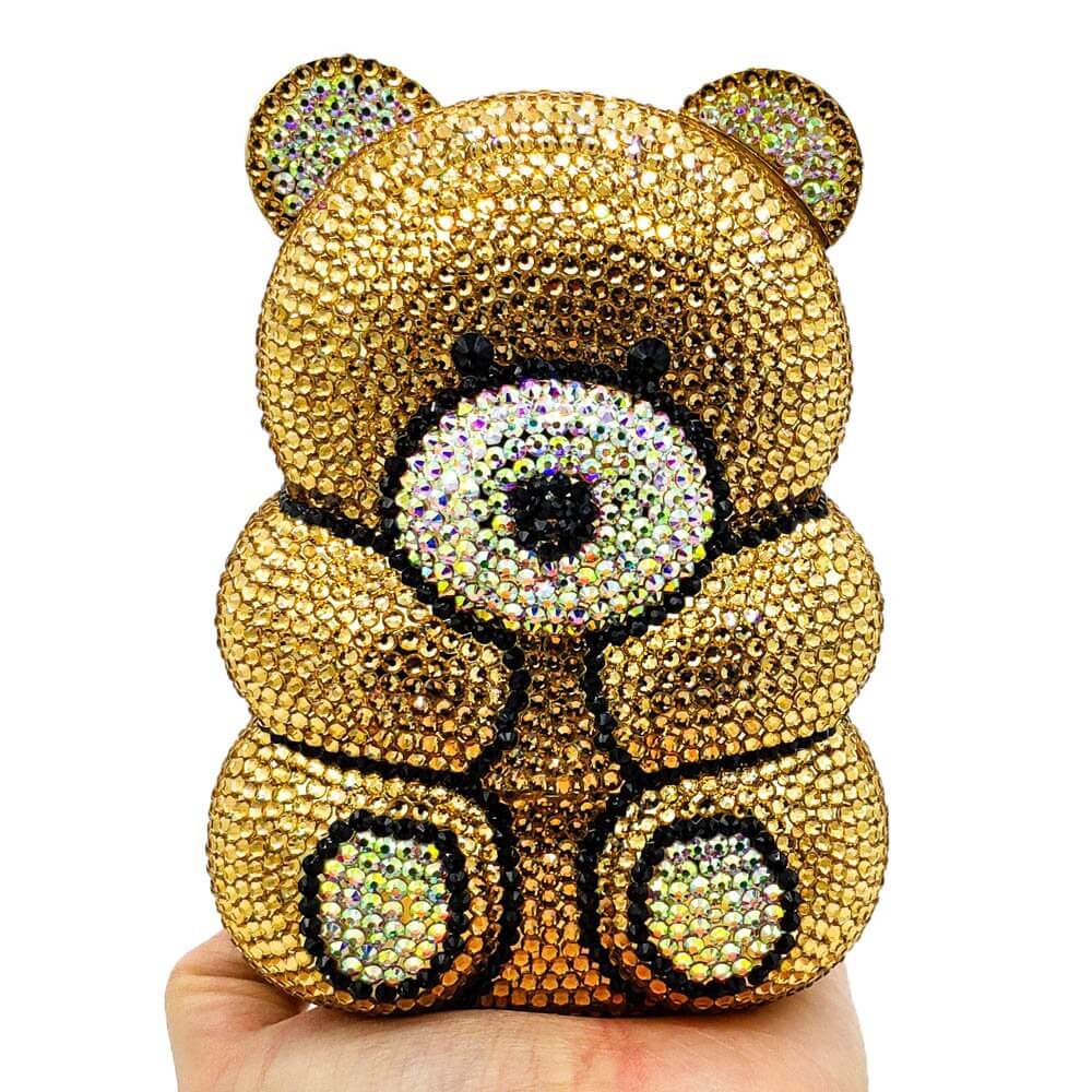 - Luxury crystal bear clutch with sparkling rhinestones for elegant, eye-catching wedding and party styling.