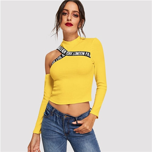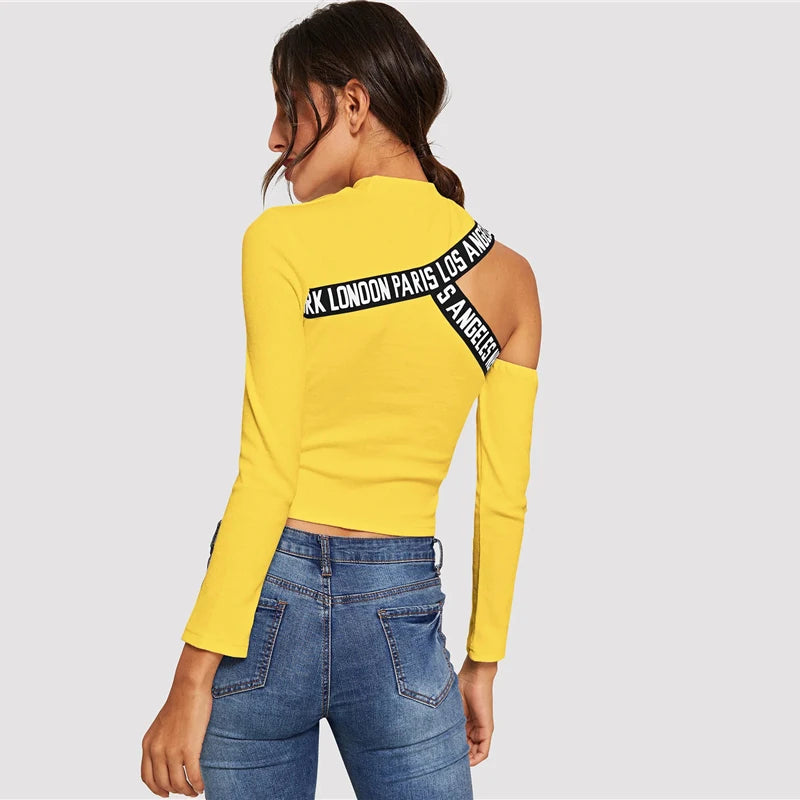 Cut-Out Shoulder Letter Tape Tee – Slim Fit