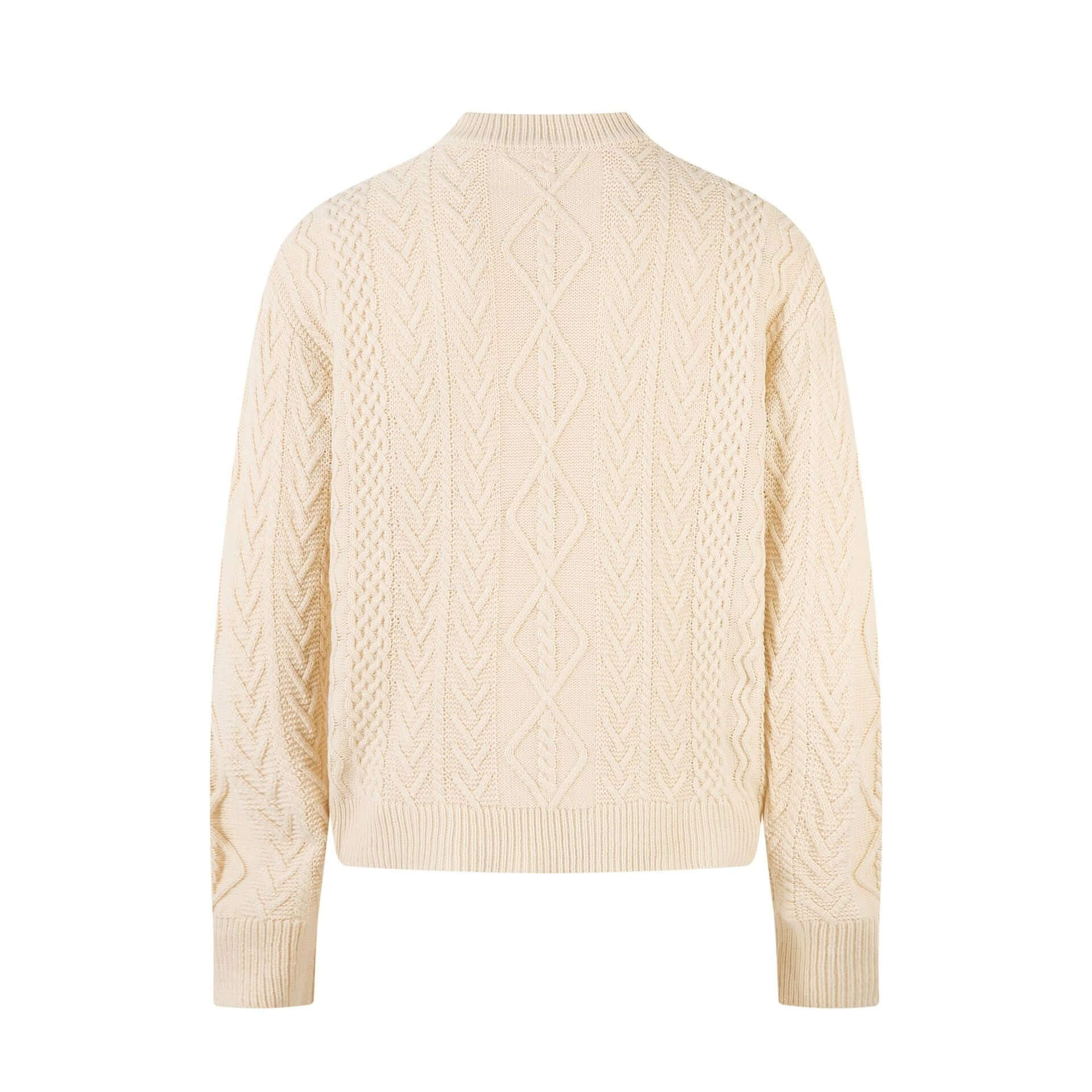 • Back view of the Diamond Pattern Jacquard Knit Sweater showcasing the intricate knit design.