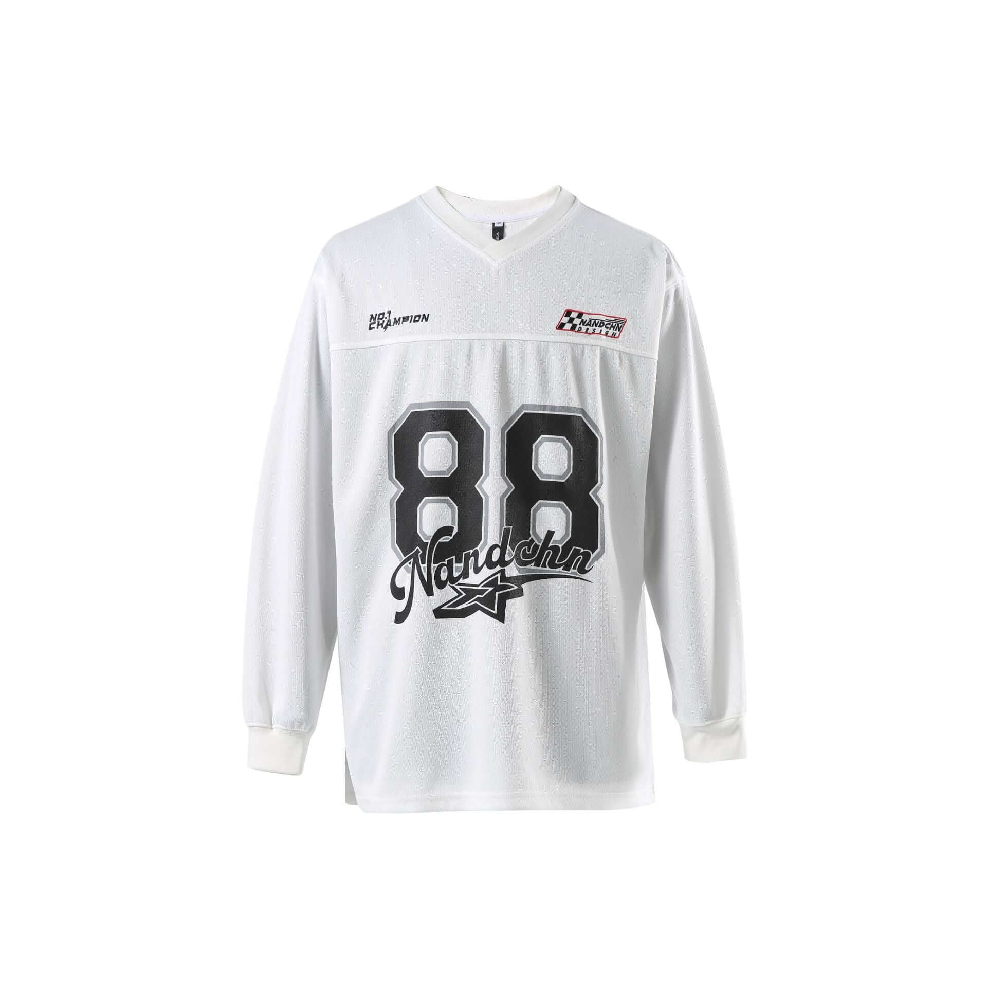 • Digital Print Jersey TShirt - Loose Fit featuring a sporty 88 graphic in black on a white long sleeve design.