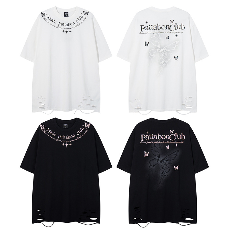 The Grozavu Distressed Butterfly Print Short Sleeve T-Shirt is designed for men and women who love casual streetwear with a... Read more