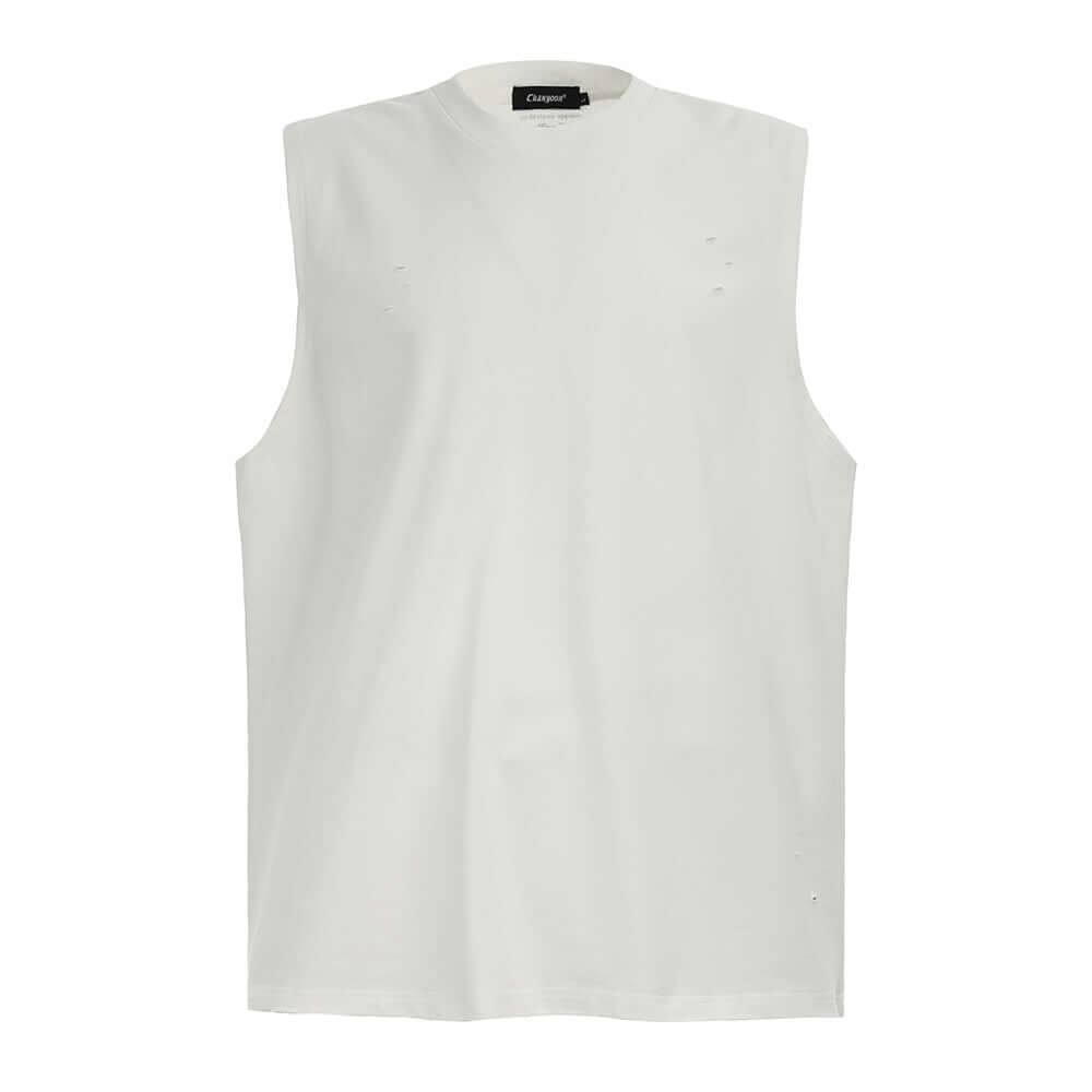 • Distressed Sport Tank Top – Loose Fit in white with subtle ripped details for a modern, casual look.