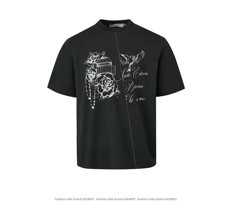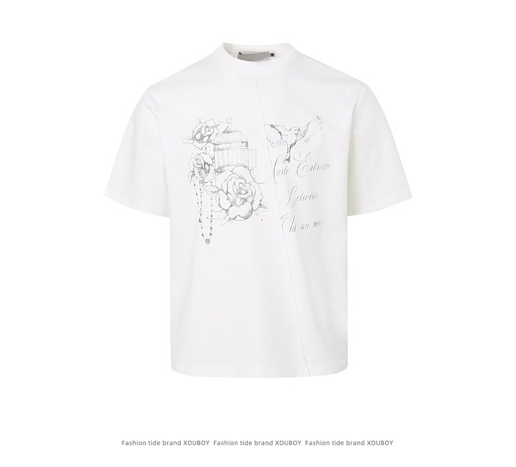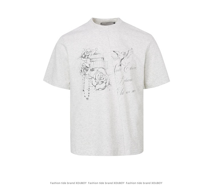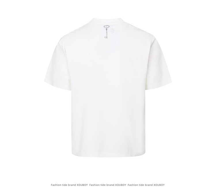 Breathable loose-fit cotton blend letter print T-shirt with drop-shoulder sleeves, wrinkle-free finish, and high color fastness for smart casual summer wear.