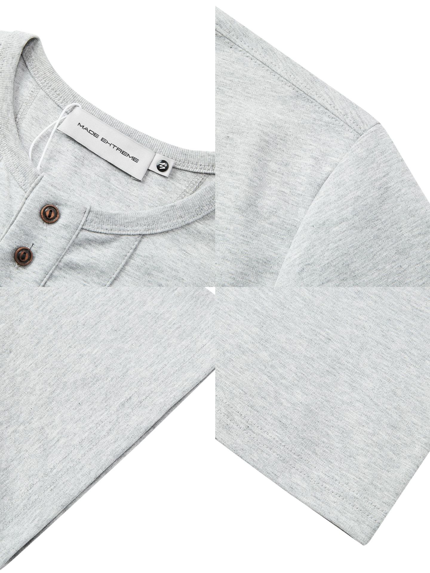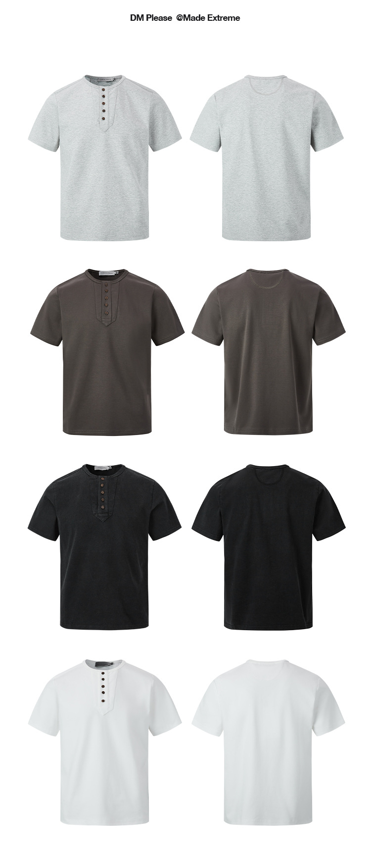 Breathable loose-fit cotton blend Henley T-shirt with five-button neckline for comfortable and stylish unisex summer casual wear.