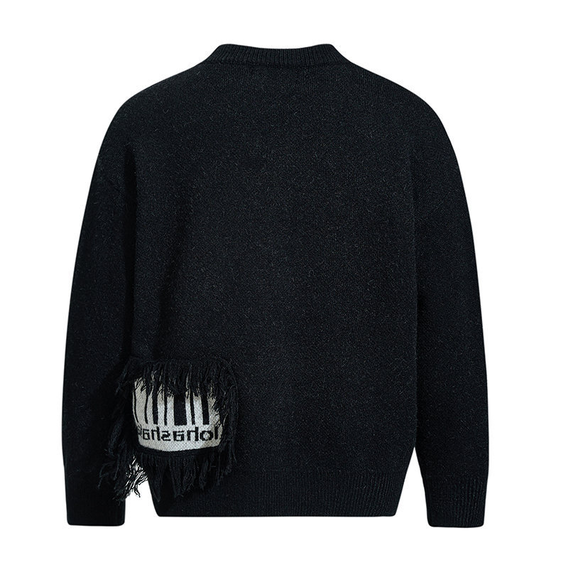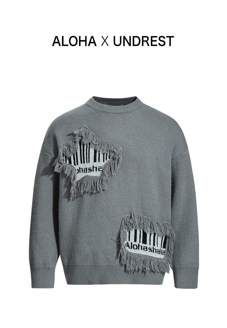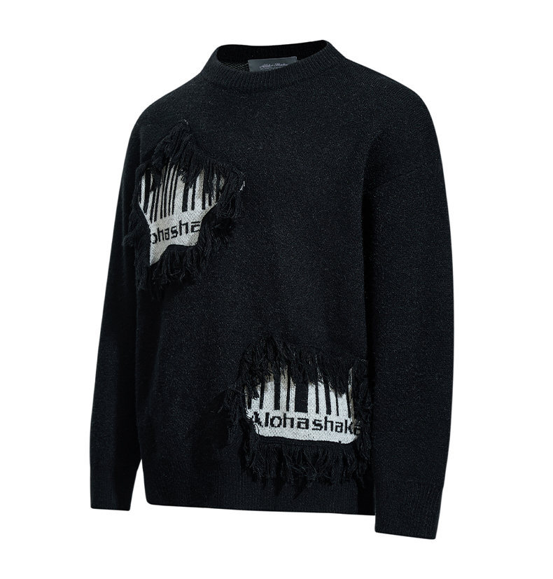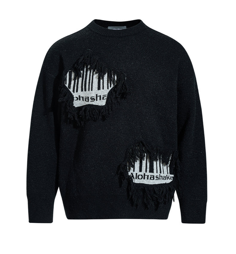 Fringe Patchwork Knit Sweater – Loose Fit