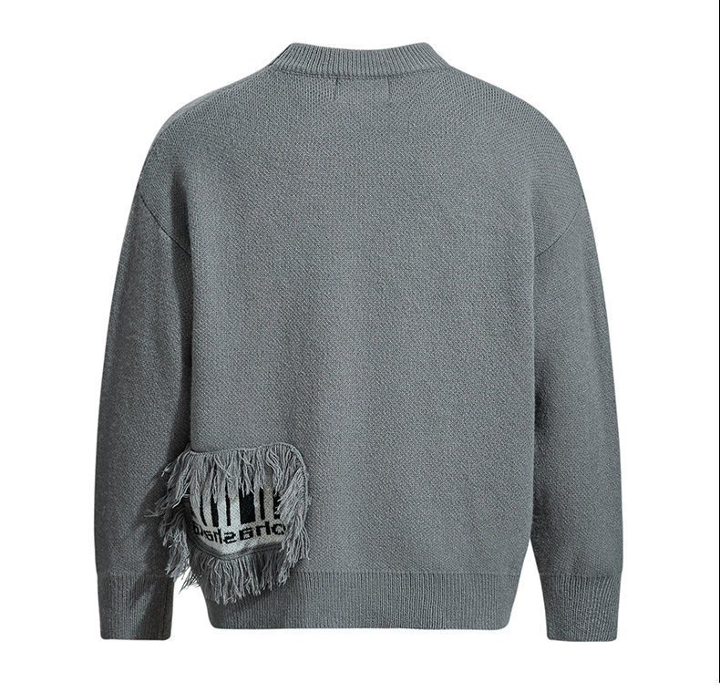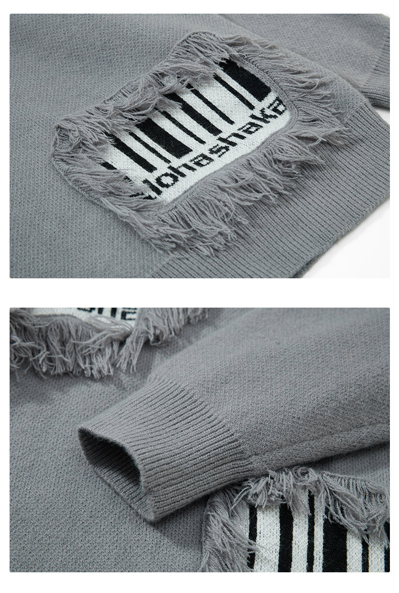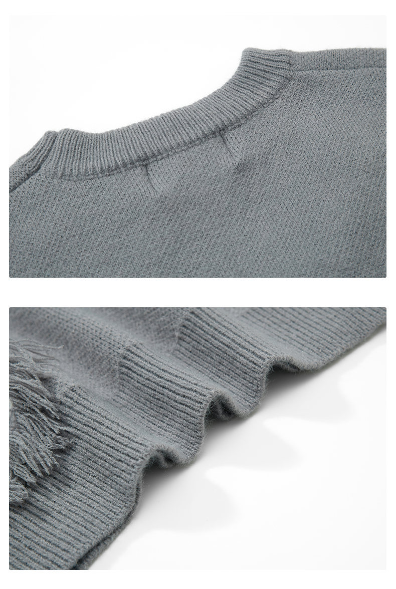 Stay cozy and stylish with this textured fringe patchwork sweater, perfect for effortless streetwear looks