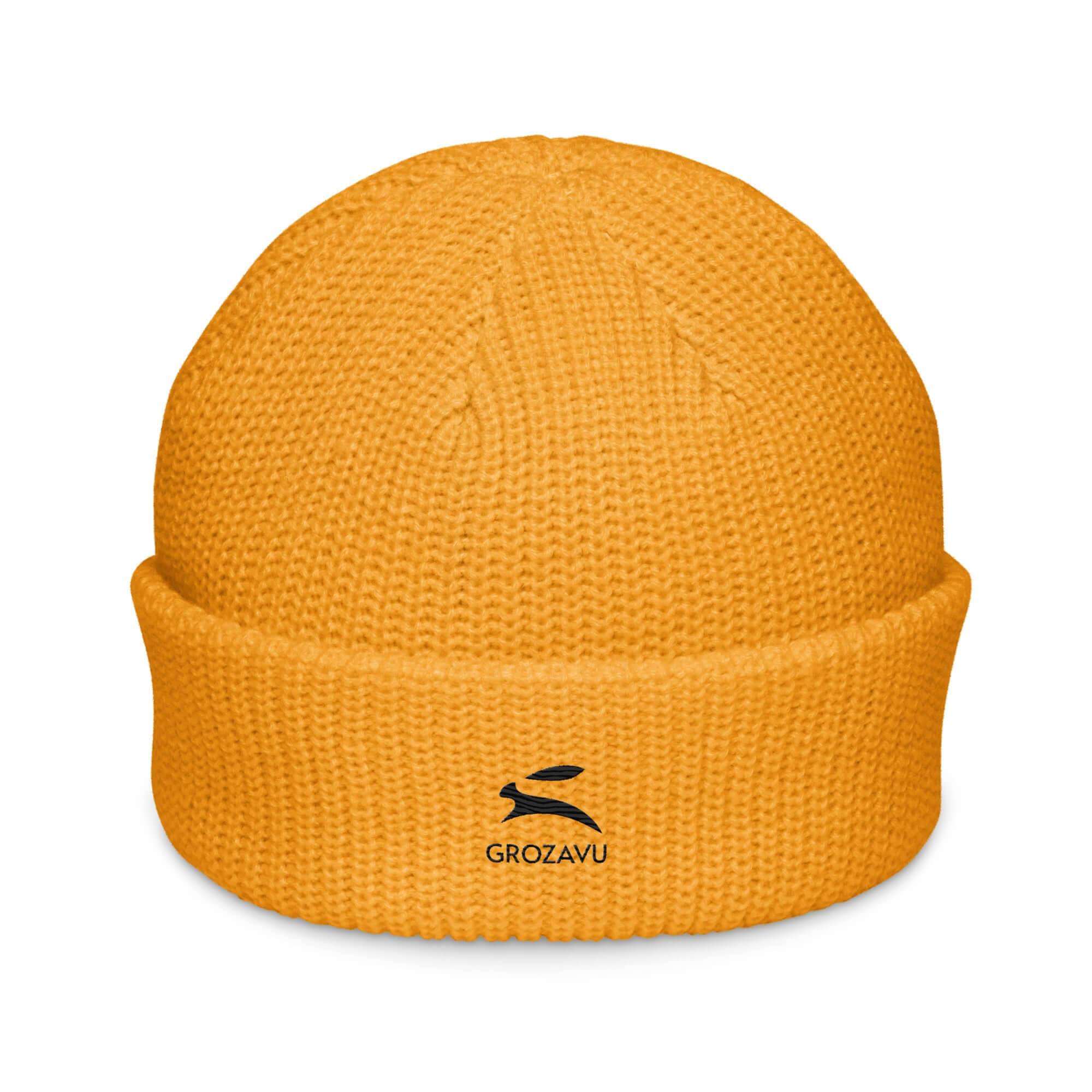 • New Grozavu beanie in vibrant yellow color featuring a ribbed knit and logo detail.