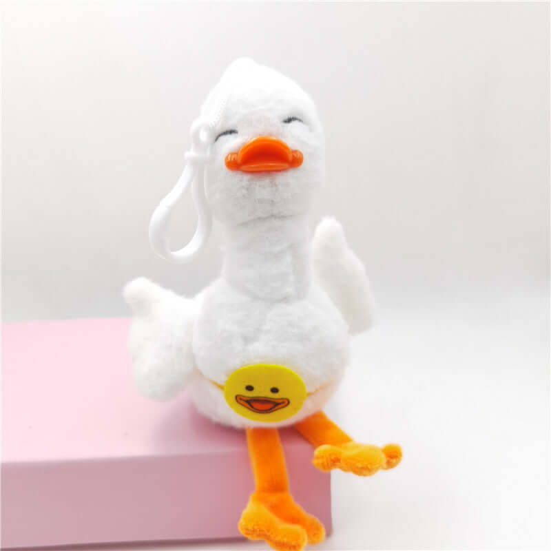 • Happy Duck Plush Keychain, adorable white duck plush accessories with smiling faces, perfect for bags and keys.
