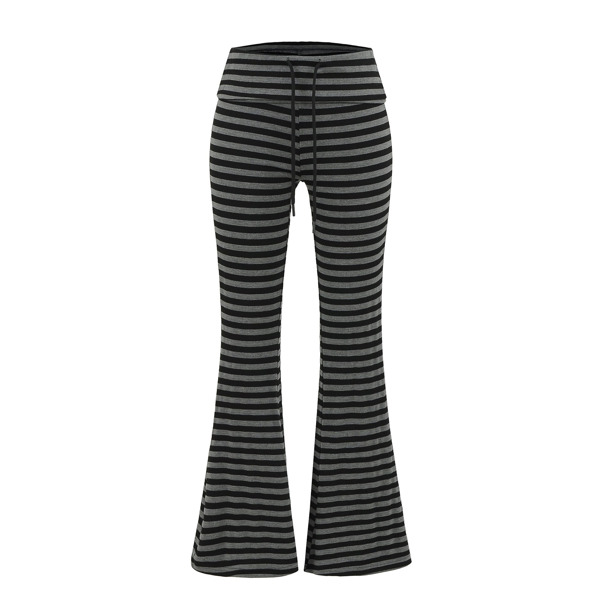 High Waisted Knitted Flared Black Gray Striped Tight Fit Elastic Micro Flared Pants Upgrade your street-style essentials with these Grozavu...