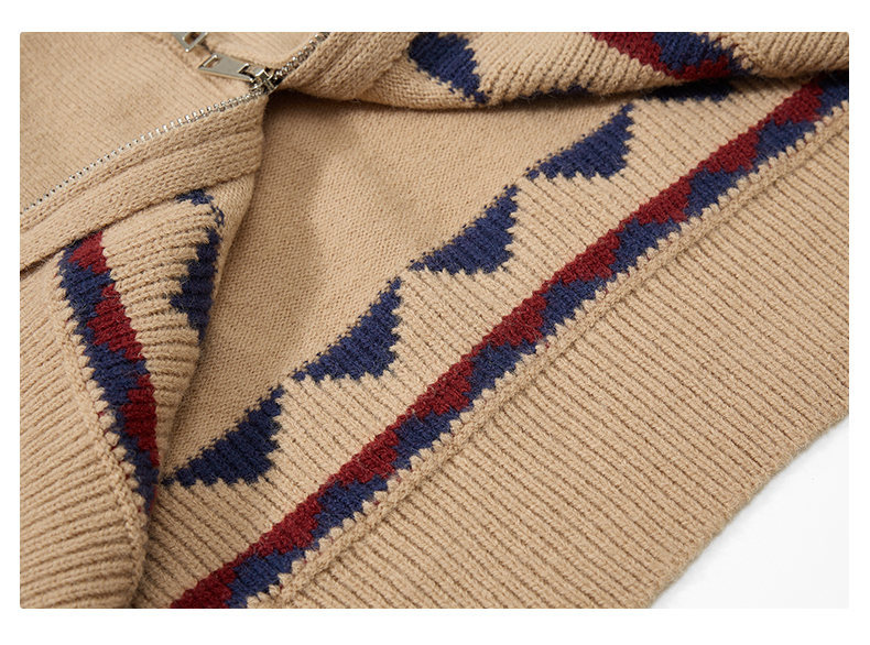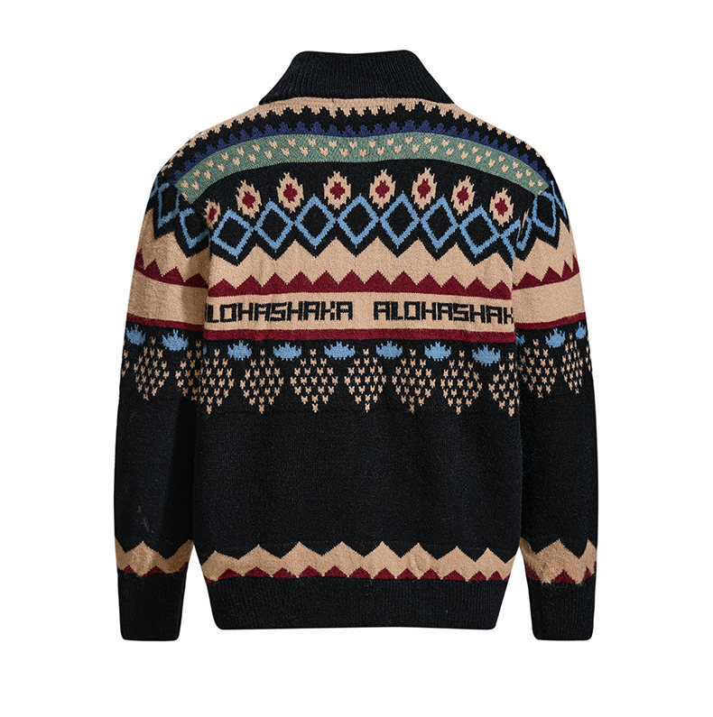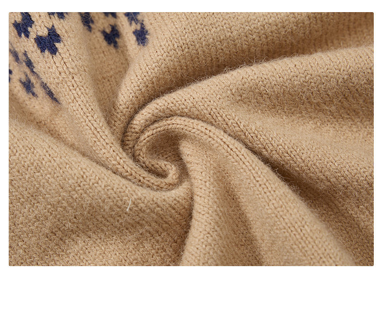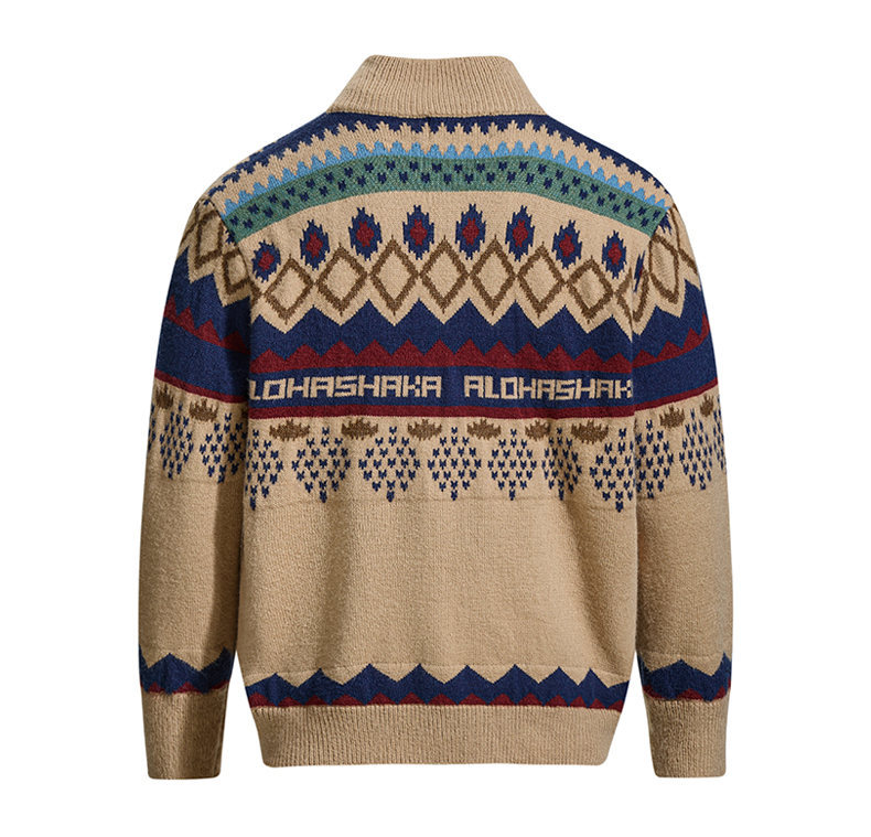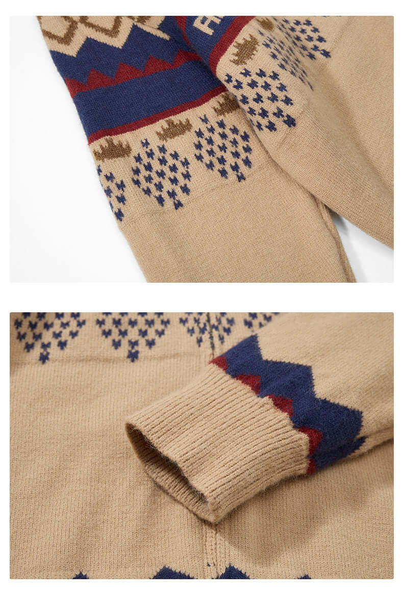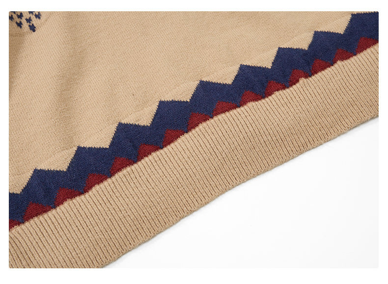 Crafted from thick acrylic knit blended with polyester fiber, it provides reliable warmth and durability for cooler seasons. The jacquard-knit detailing across the front adds visual texture and depth, making this pullover stand out without overpowering your outfit. Available in black and apricot, it pairs effortlessly with denim, cargo pants, or layered outerwear for everyday casual wear.
