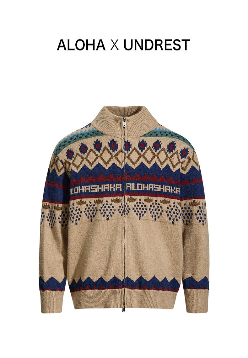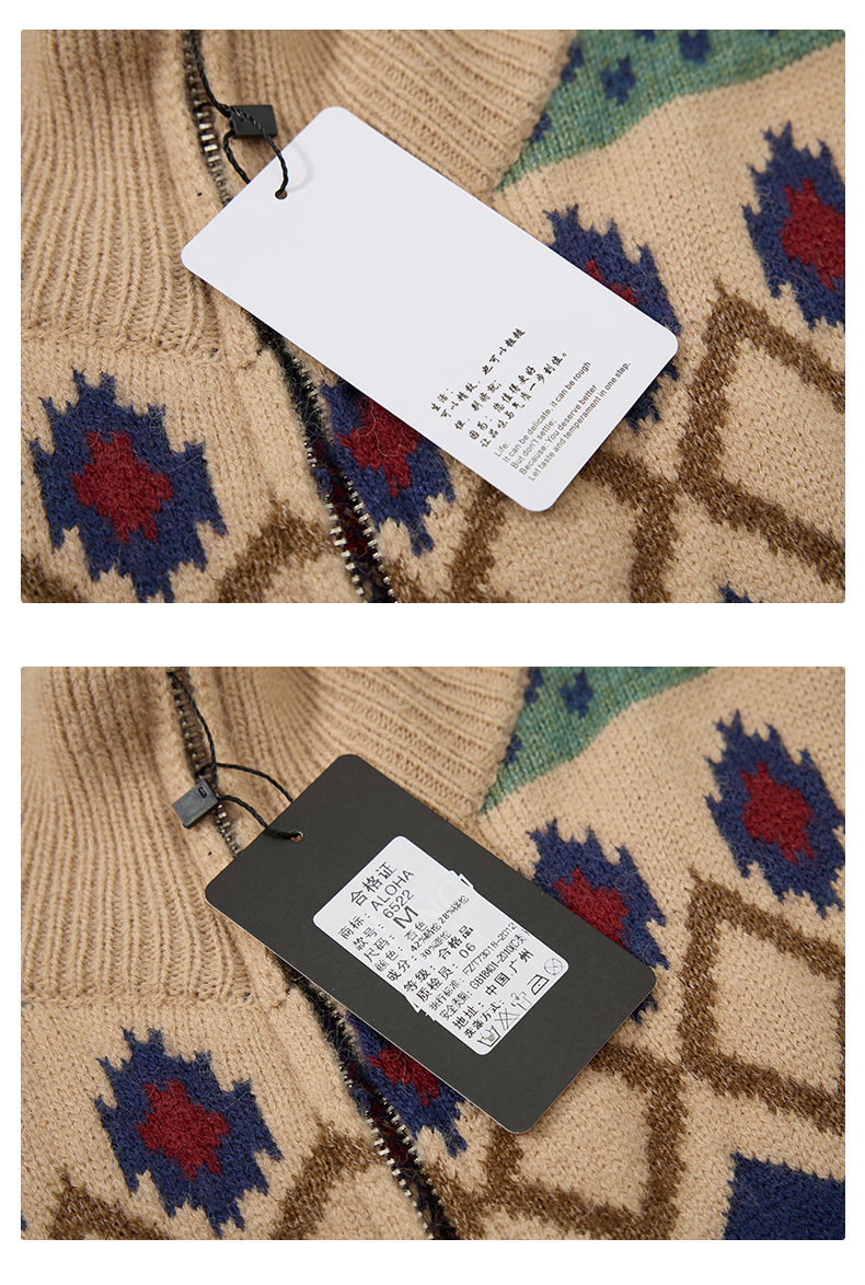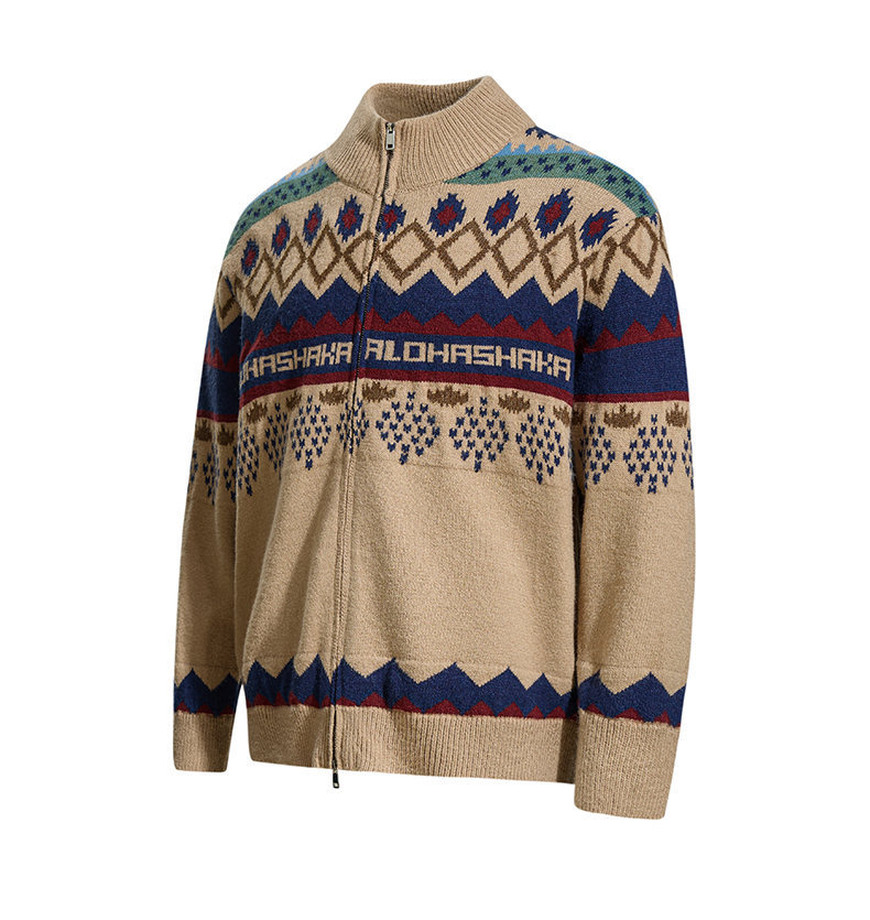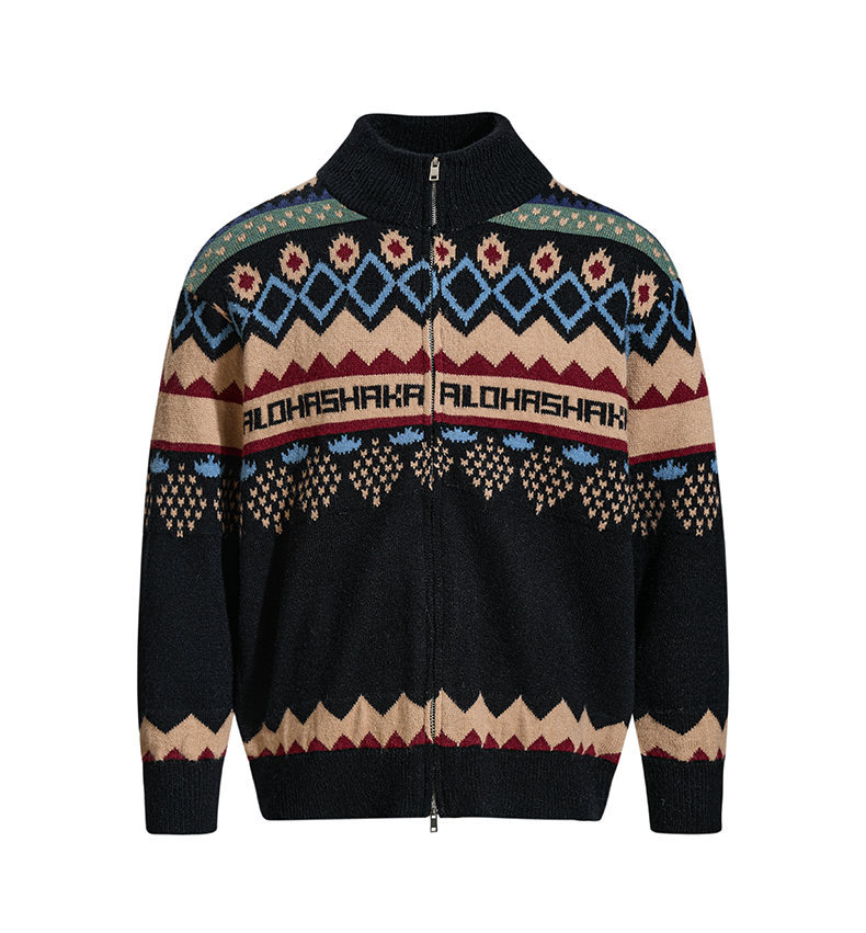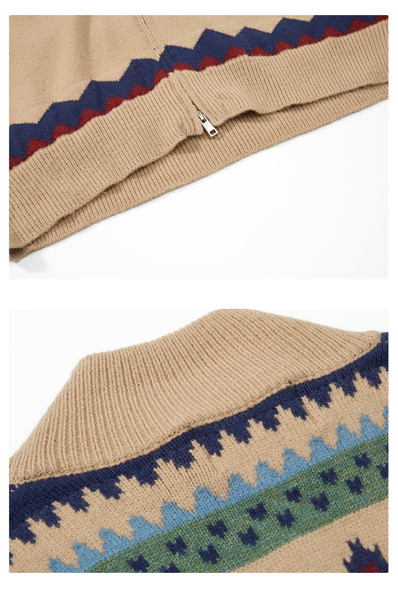 Crafted from thick acrylic knit blended with polyester fiber, it provides reliable warmth and durability for cooler seasons. The jacquard-knit detailing across the front adds visual texture and depth, making this pullover stand out without overpowering your outfit. Available in black and apricot, it pairs effortlessly with denim, cargo pants, or layered outerwear for everyday casual wear.