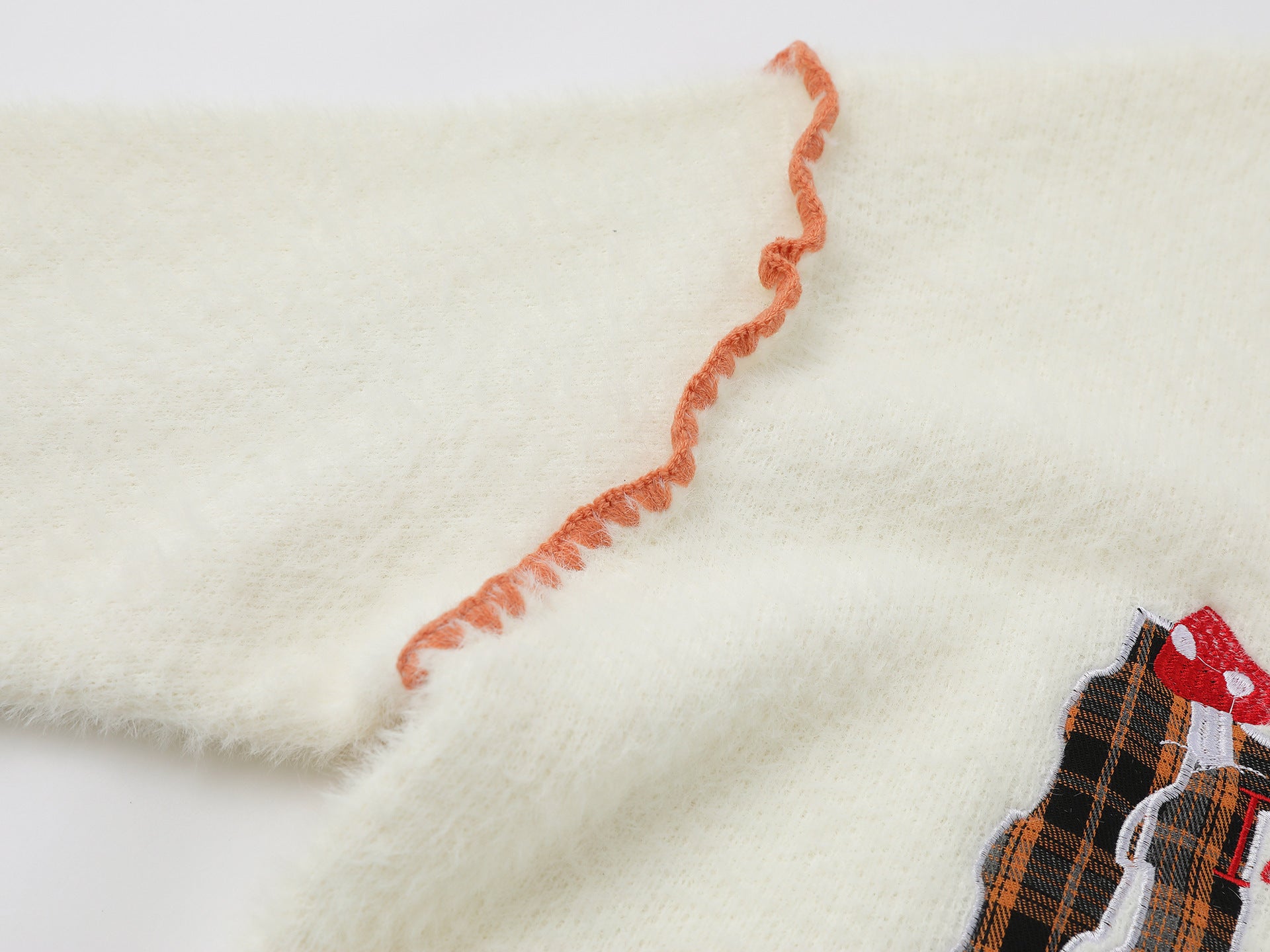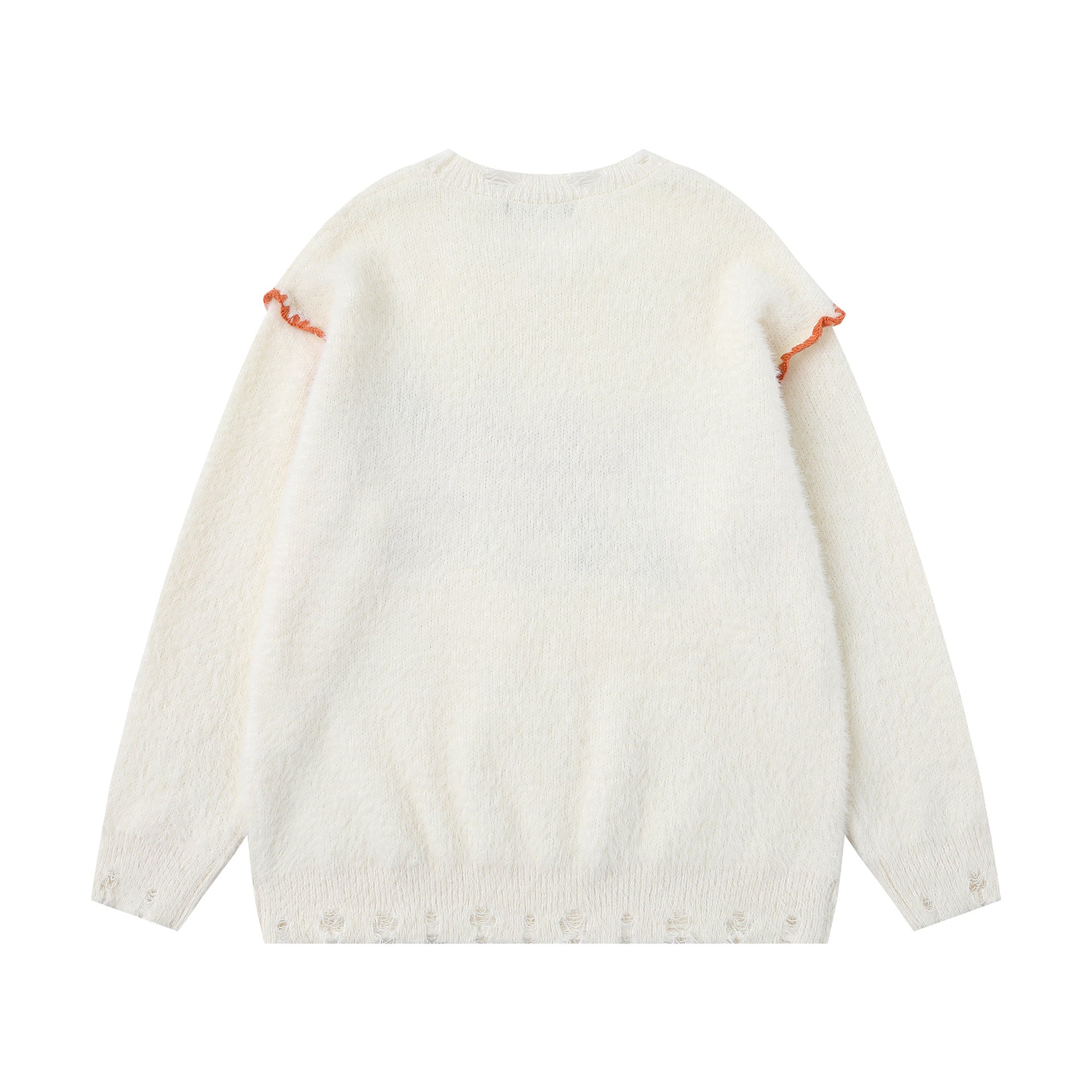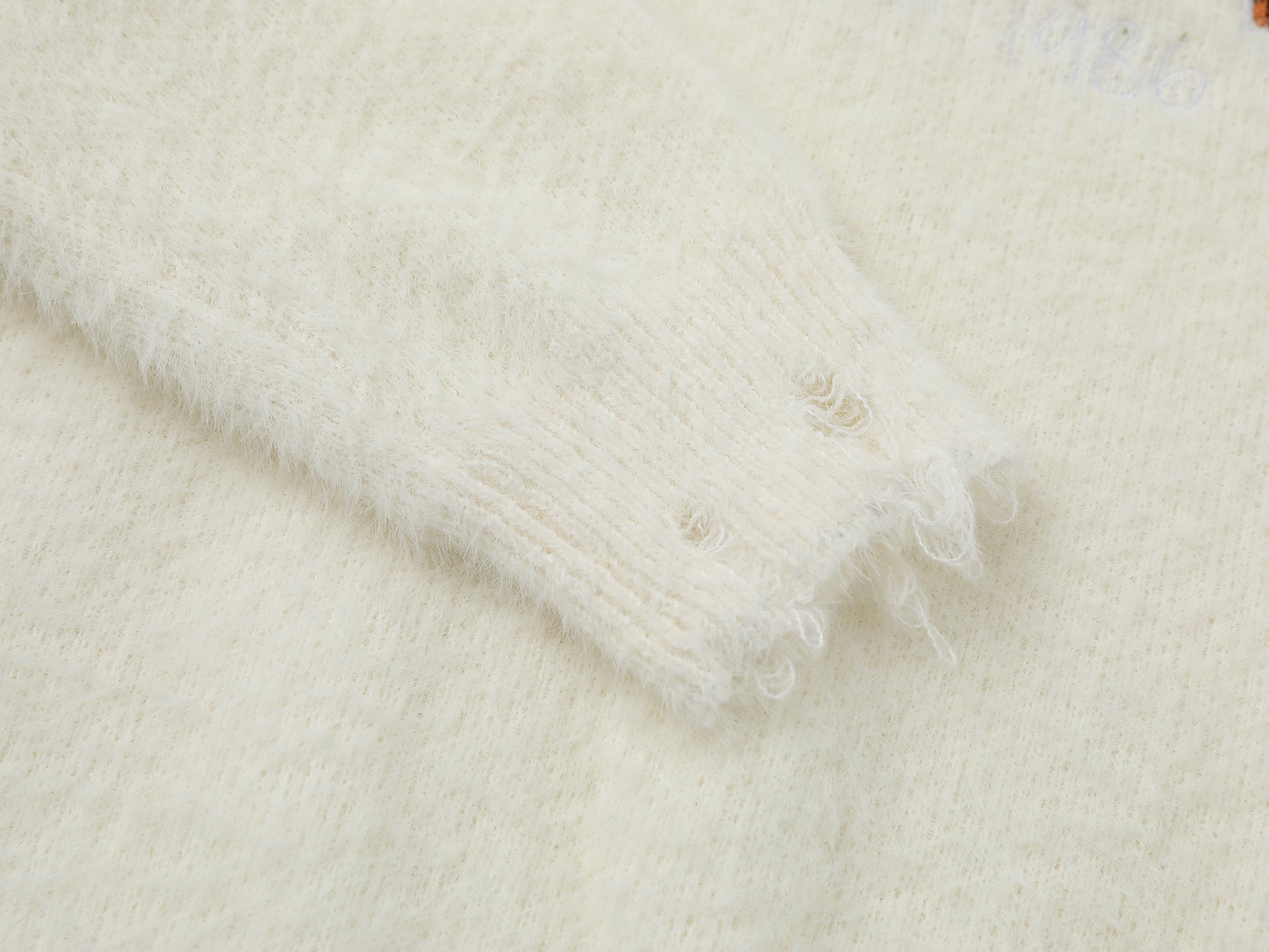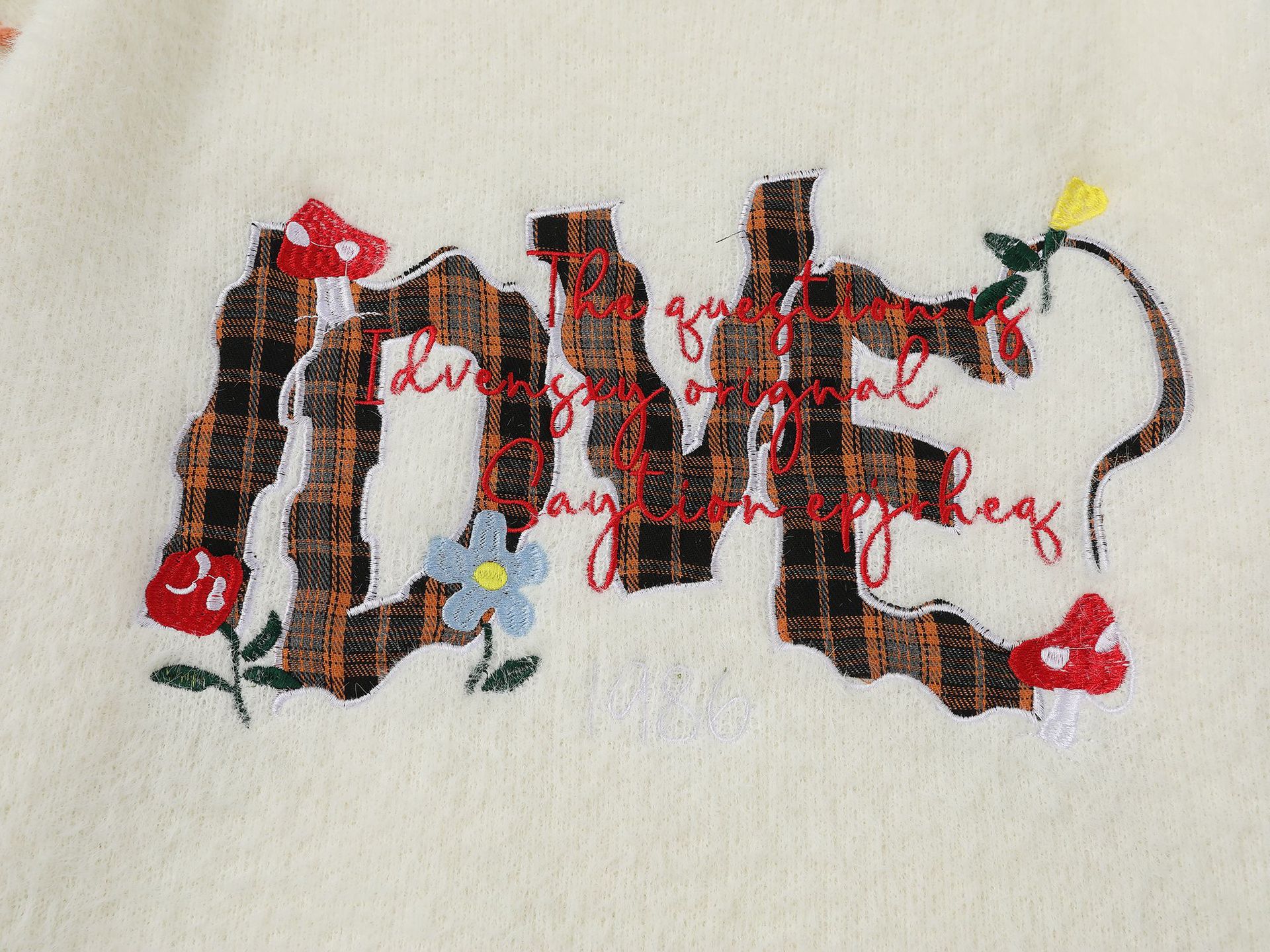 - Warm loose-fit nylon knit sweater with hand-stitched letter applique for bold, comfortable, and stylish daily streetwear.