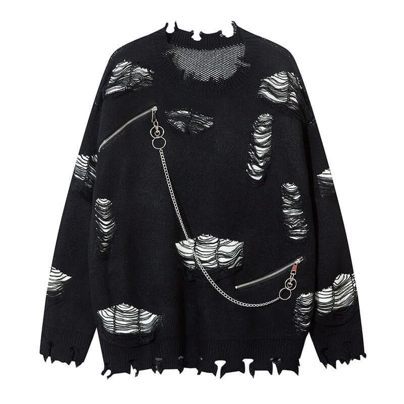 Knitted Sweater Ripped Chain Splicing