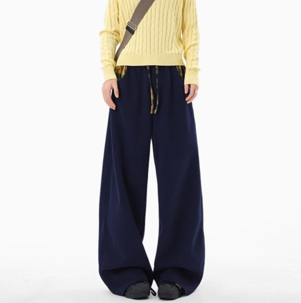 - Loose wide-leg sweatpants with adjustable waist for relaxed, stylish autumn wear.