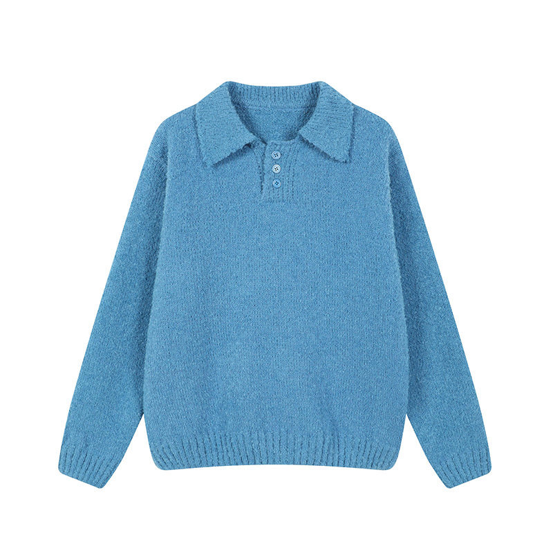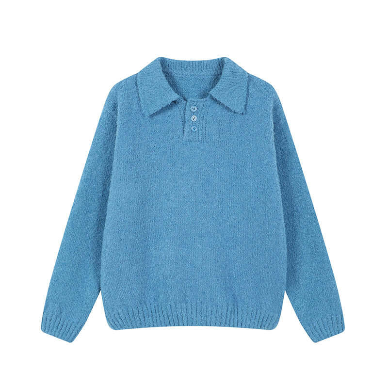 Polo Neck Knit Sweater - Loose Fit