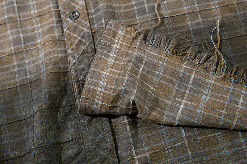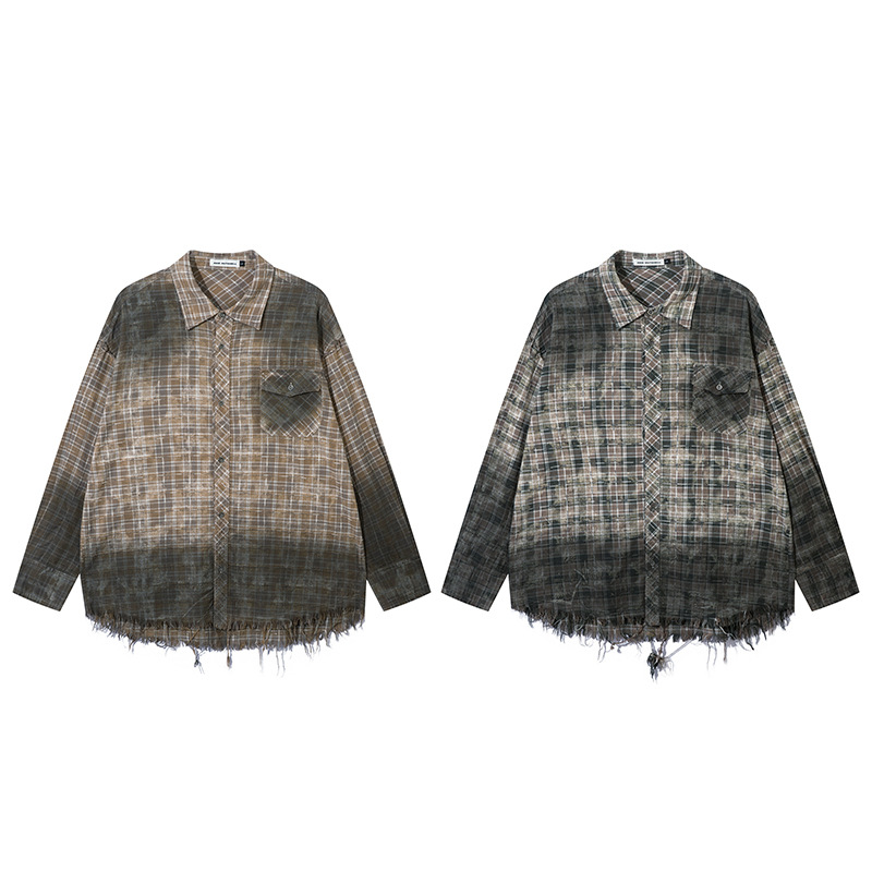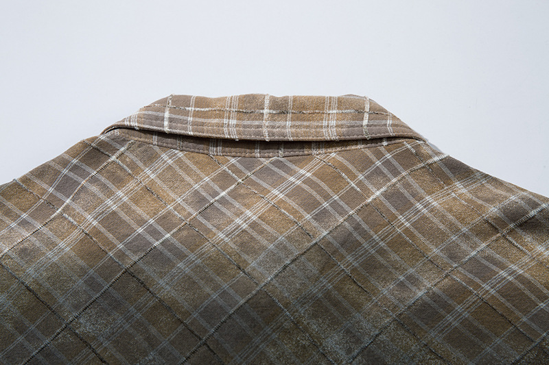 Breathable pure cotton loose-fit plaid shirt with frayed hem and wrinkle-free finish for stylish vintage streetwear comfort in spring and autumn.